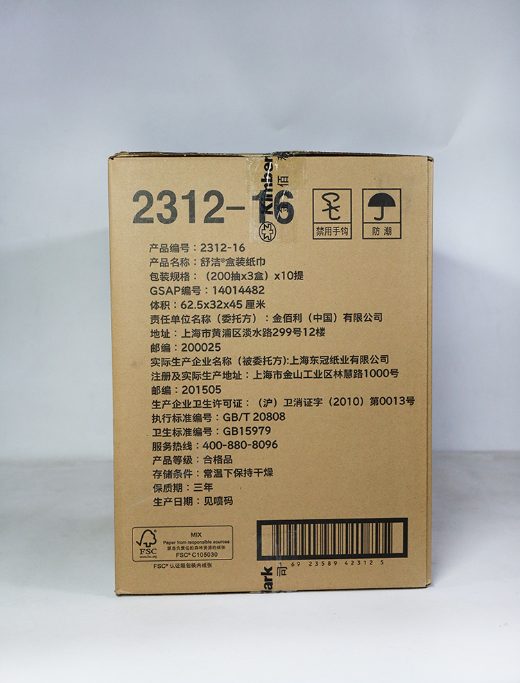生活用品  > 生活用纸  > 擦手纸  >  耐辉顿  >  耐辉顿 金佰利擦手纸舒洁2312硬盒面巾纸抽纸餐巾纸擦手纸抽纸200抽整箱10提 30包 (单位:箱)