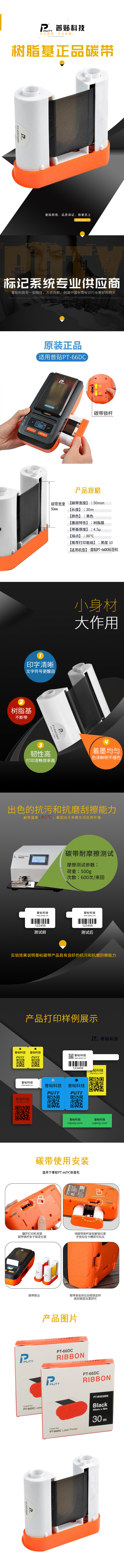 • 商品名称:普贴(PUTY)PT-R5030 树脂基正品标签打印机碳带 适用于PT-66DC标签打印机(单位:卷)黑色