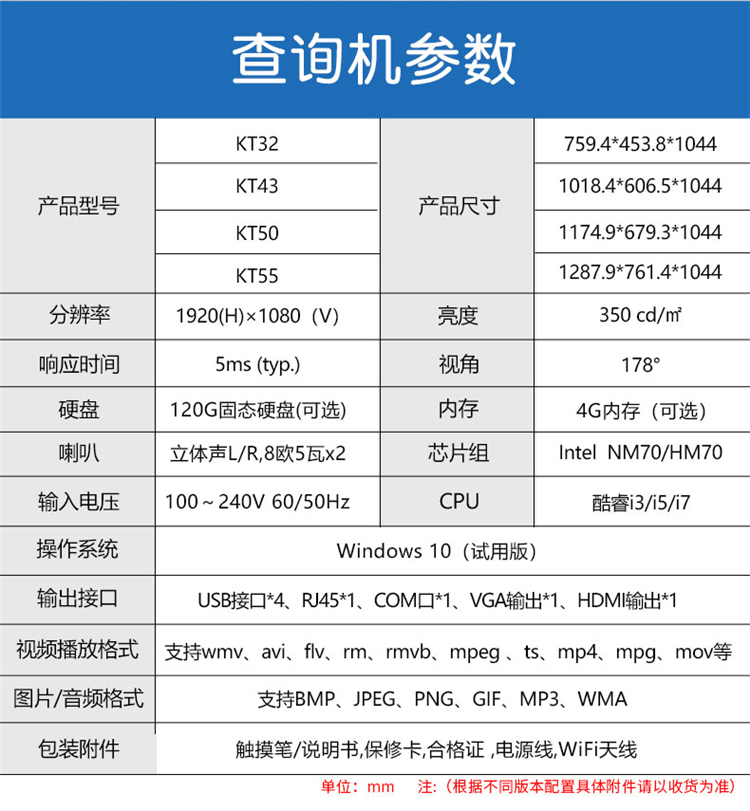 • 商品名称:中银(BOCT)DT6502 65英寸卧式触摸查询机自助立式一体机 分辨率:1920*1080(单位:台)黑色