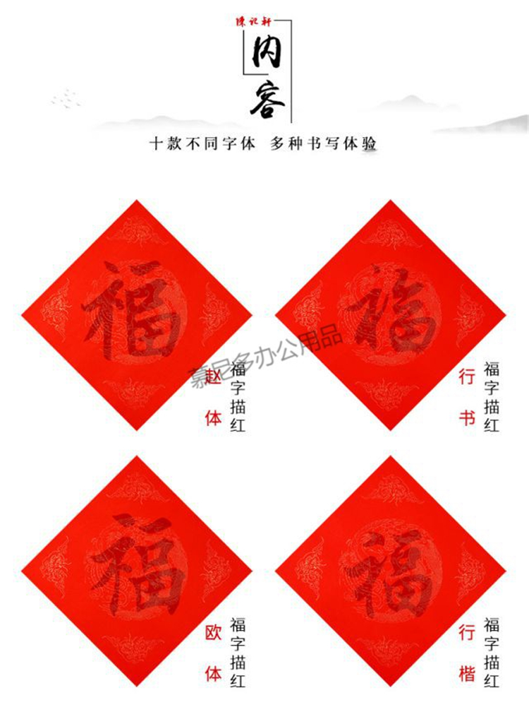 办公耗材  > 办公用纸  > 宣纸  >  迈爽  >  迈爽 20cm*20cm 小号行楷福字纸 10张/包 红色(单位:包)