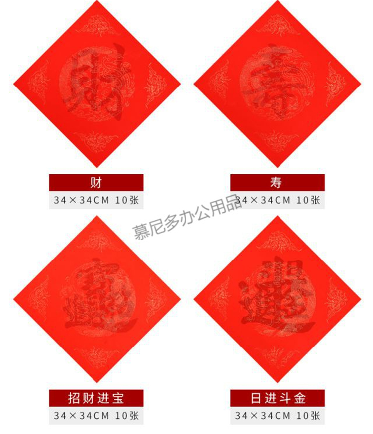 • 商品名称:迈爽 20cm*20cm 小号行楷福字纸 10张/包 红色(单位:包)