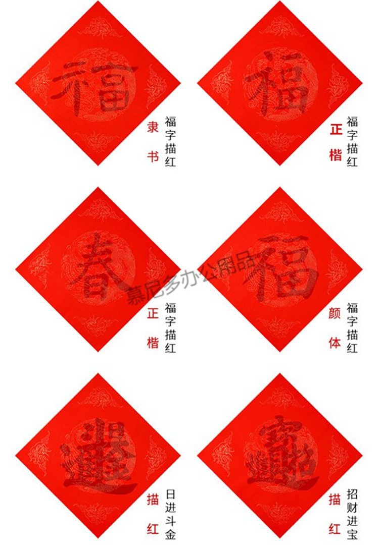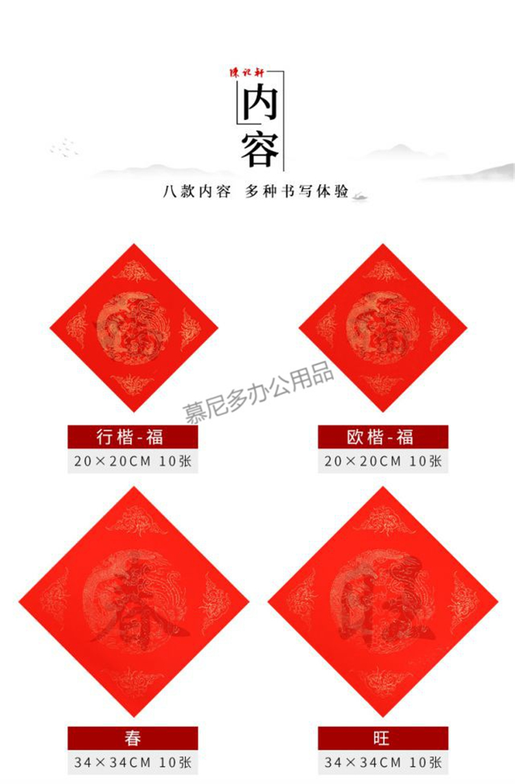 • 商品名称:迈爽 20cm*20cm 小号行楷福字纸 10张/包 红色(单位:包)