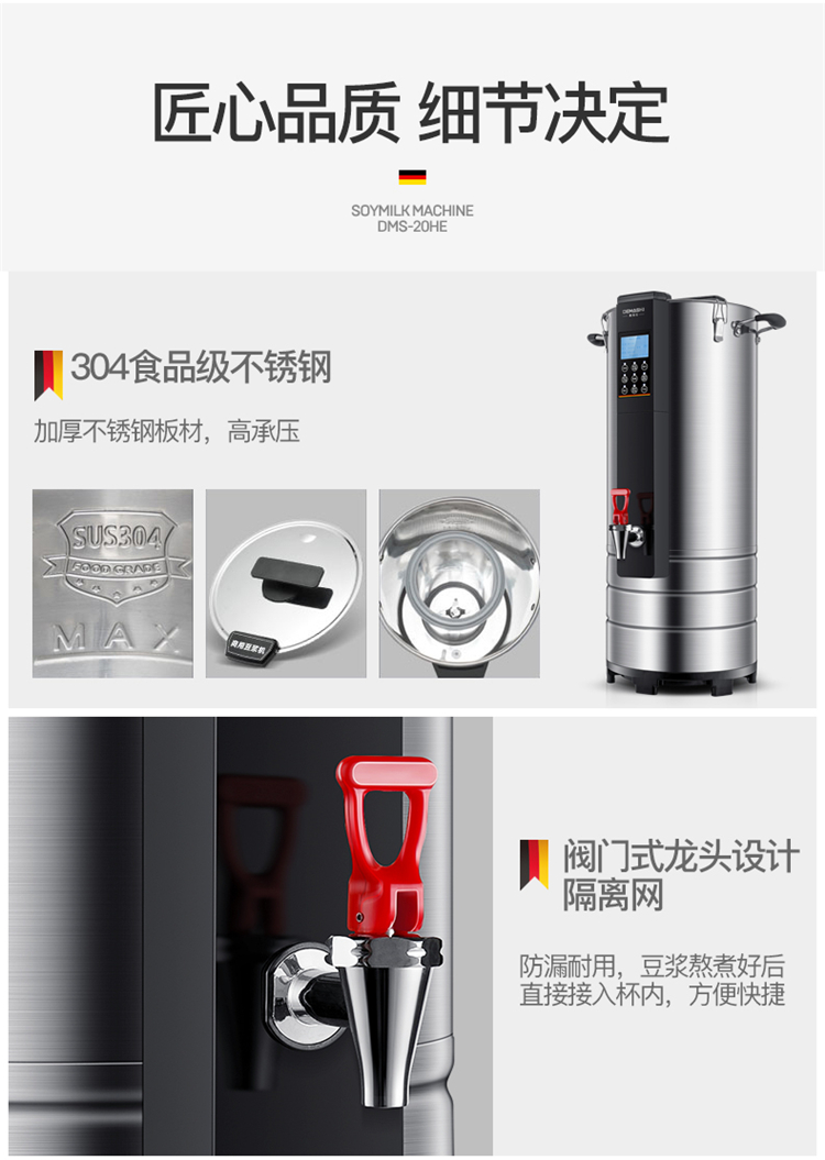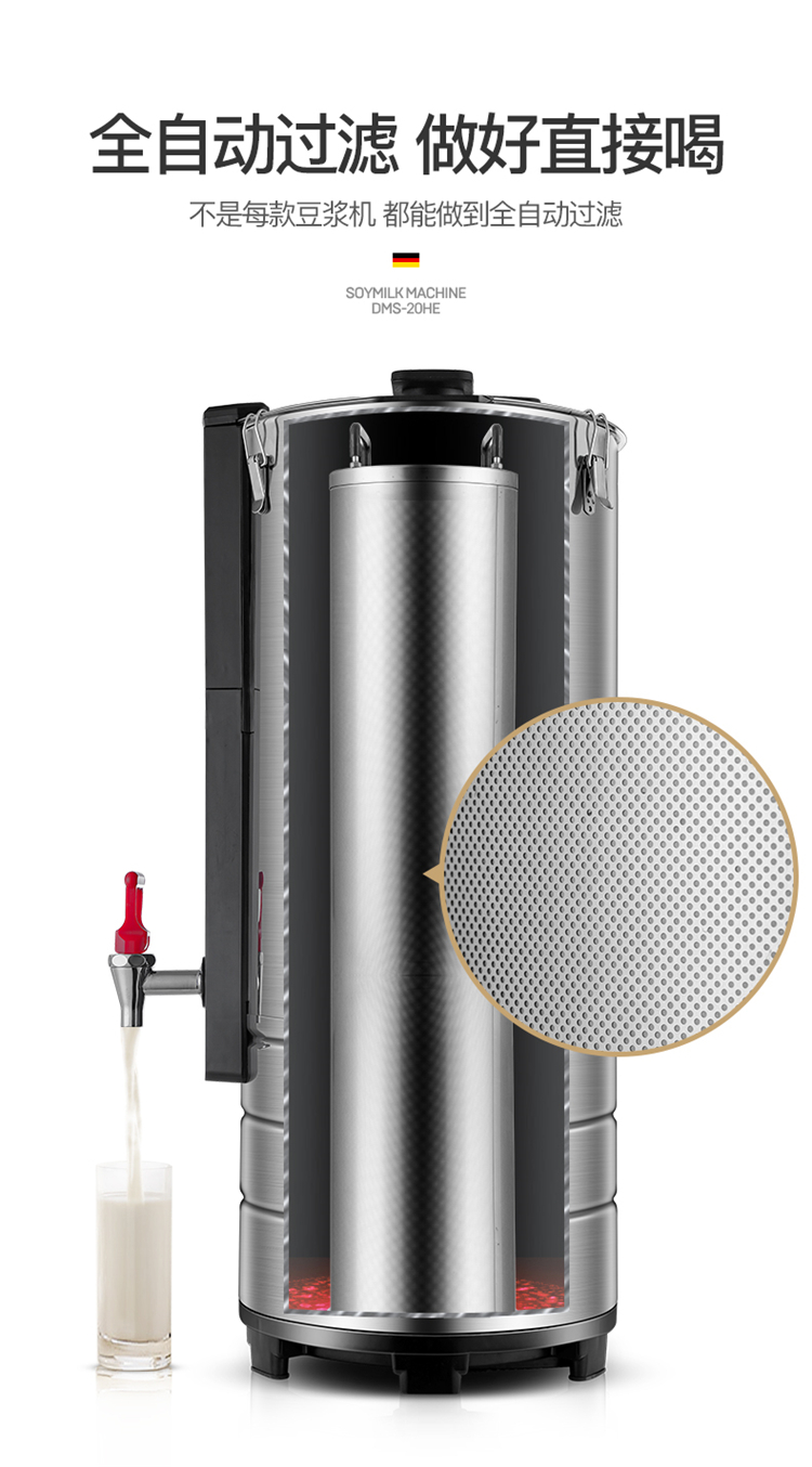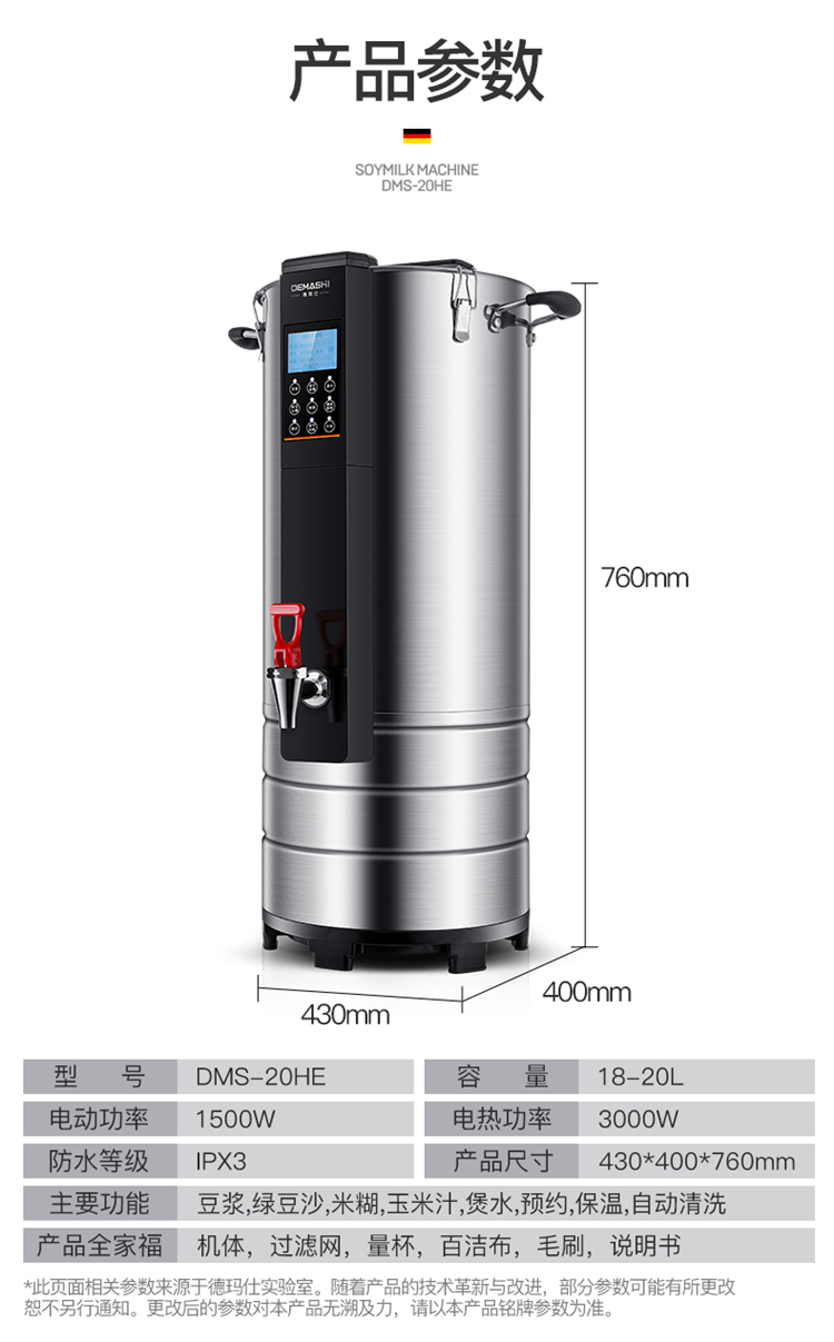 • 商品名称:德玛仕(DEMASHI)豆浆机商用 全自动浆渣分离免滤磨浆机 现磨米浆机20L DMS-20HE(包辅材包安装)(单位:台)