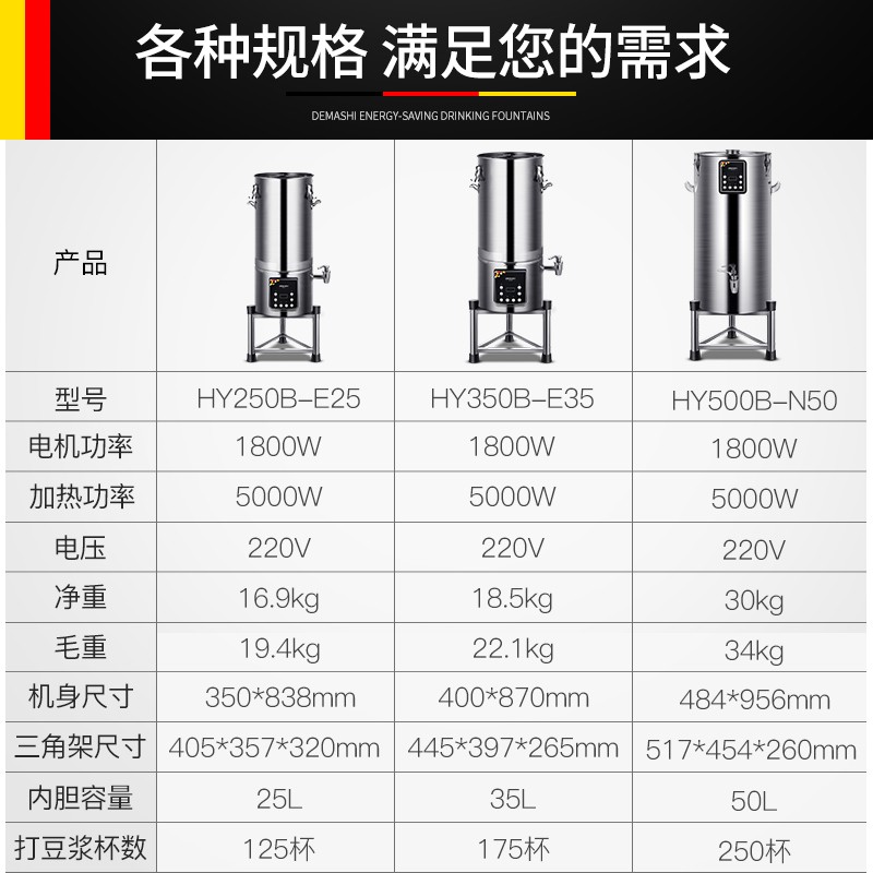 • 商品名称:德玛仕(DEMASHI)豆浆机商用 全自动浆渣分离免滤磨浆机 现磨米浆机 45L HY450B-E45【包辅材包安装】(单位:台)