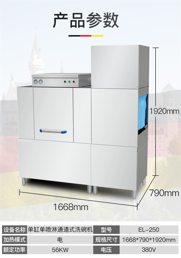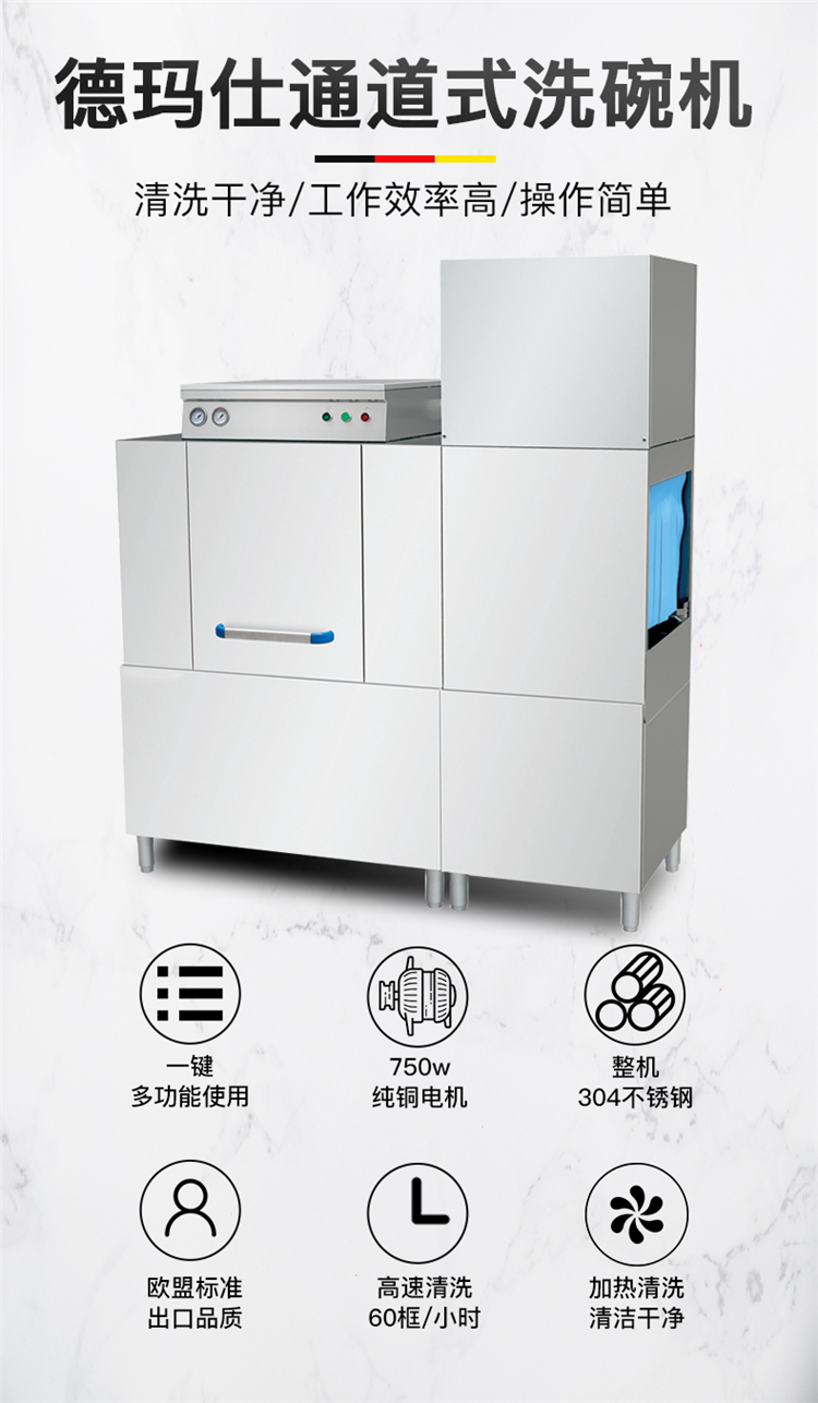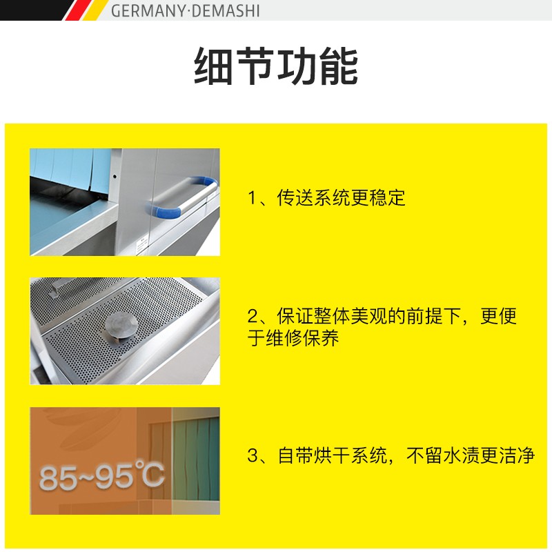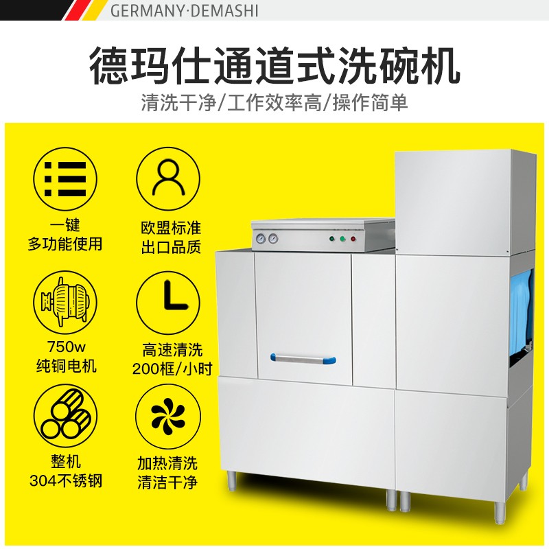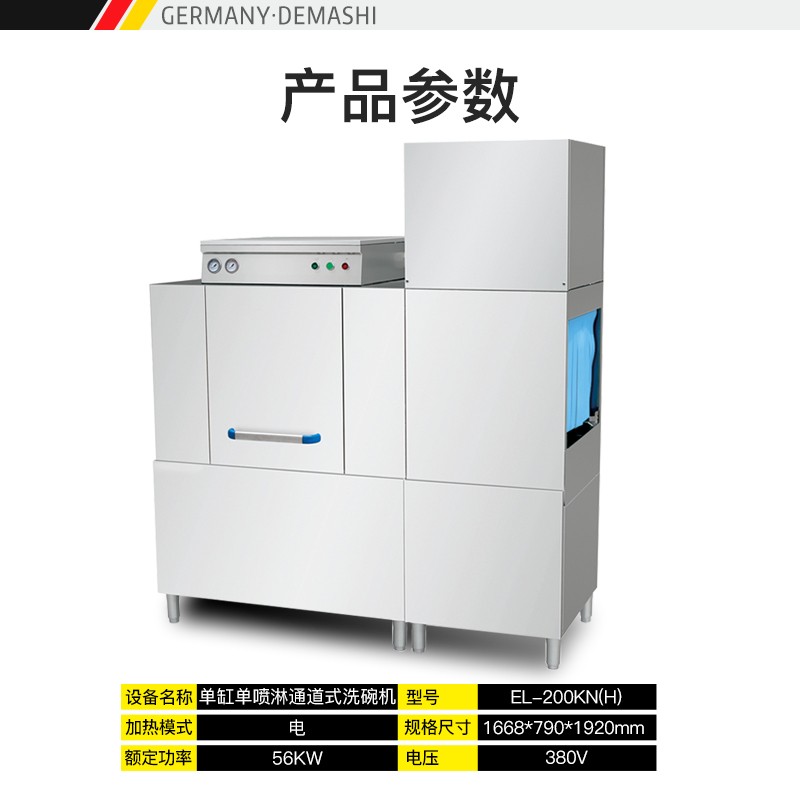 • 商品名称:德玛仕(DEMASHI)通道式洗碗机长龙全自动 商用 厨房洗碟机 隧道式清洗 单缸单喷淋带烘干EL-200KN(H)(单位:台)