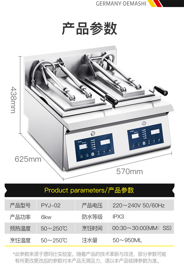 • 商品名称:德玛仕(DEMASHI)双头电热煎饺机 饺子机 煎扒葱油饼 PYJ-02【工程升级款】(单位:台)