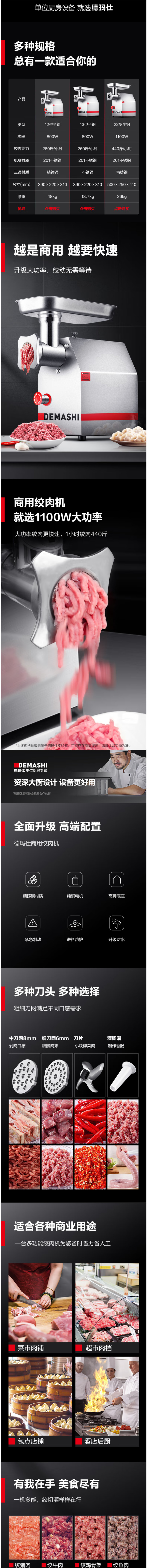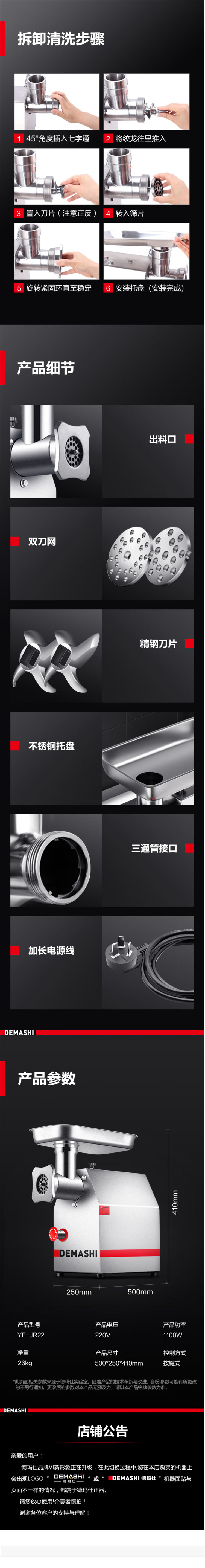 • 商品名称:德玛仕(DEMASHI)商用绞肉机肉档 碎肉绞切打肉灌肠机 急停按钮 绞肉绞香料 YF-JR22 工程款(单位:台)