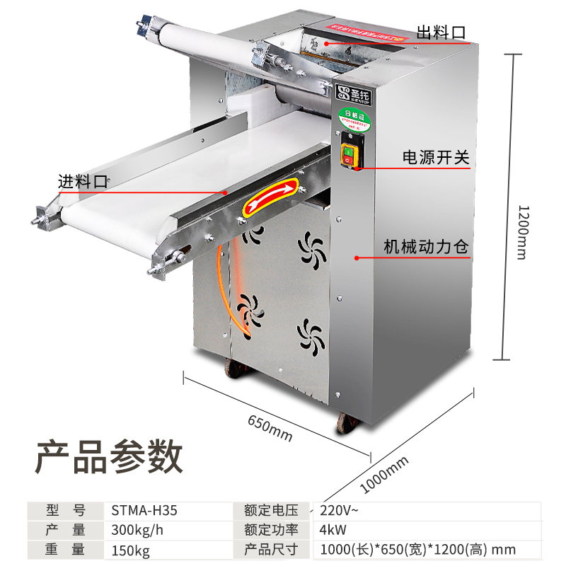 商品名称: 圣托 STMA-H35 1000*650*1200mm 大型电动立式压面机 不锈钢包子馒头机 (单位:台)