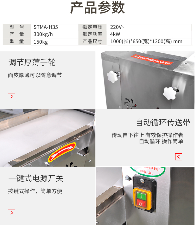 • 商品名称:圣托 STMA-H35 1000*650*1200mm 大型电动立式压面机 不锈钢包子馒头机 (单位:台)