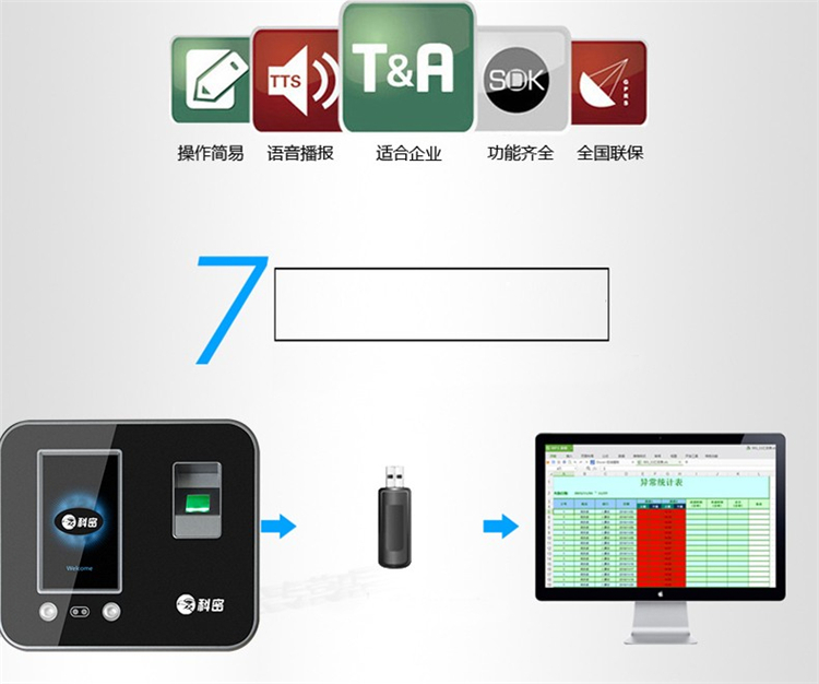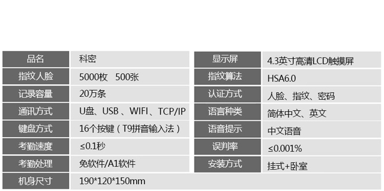 • 商品名称:科密 DF-9630 面部人脸指纹密码混合识别考勤机 WIFI网络打卡机自动生成报表 黑色(单位:台)