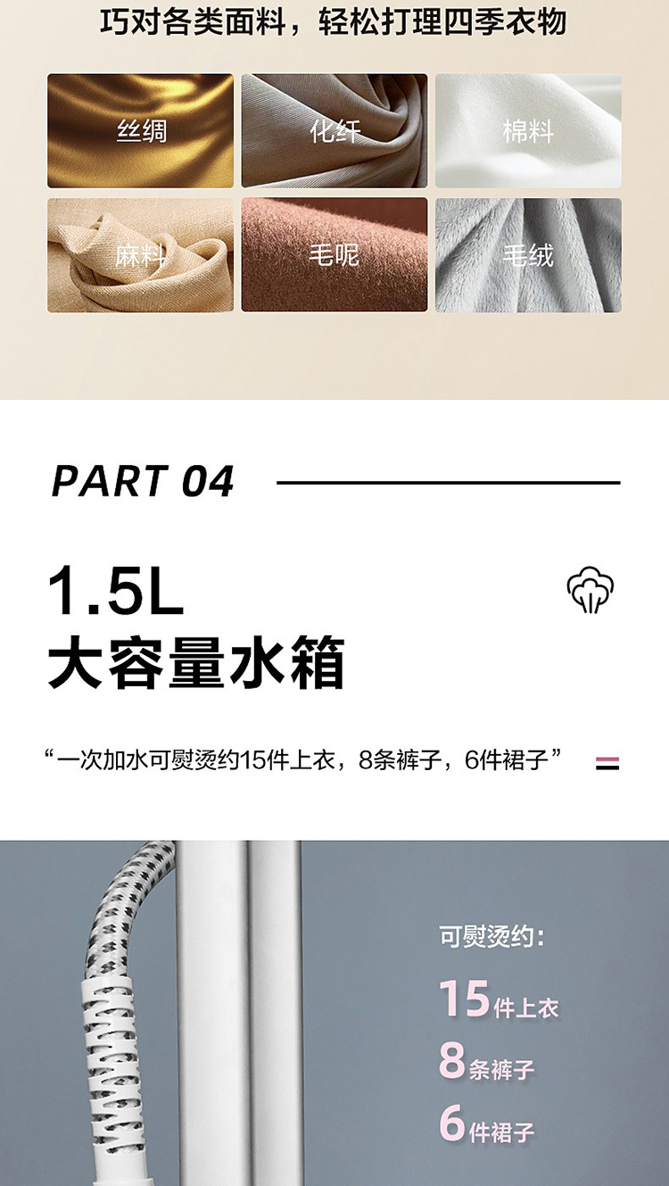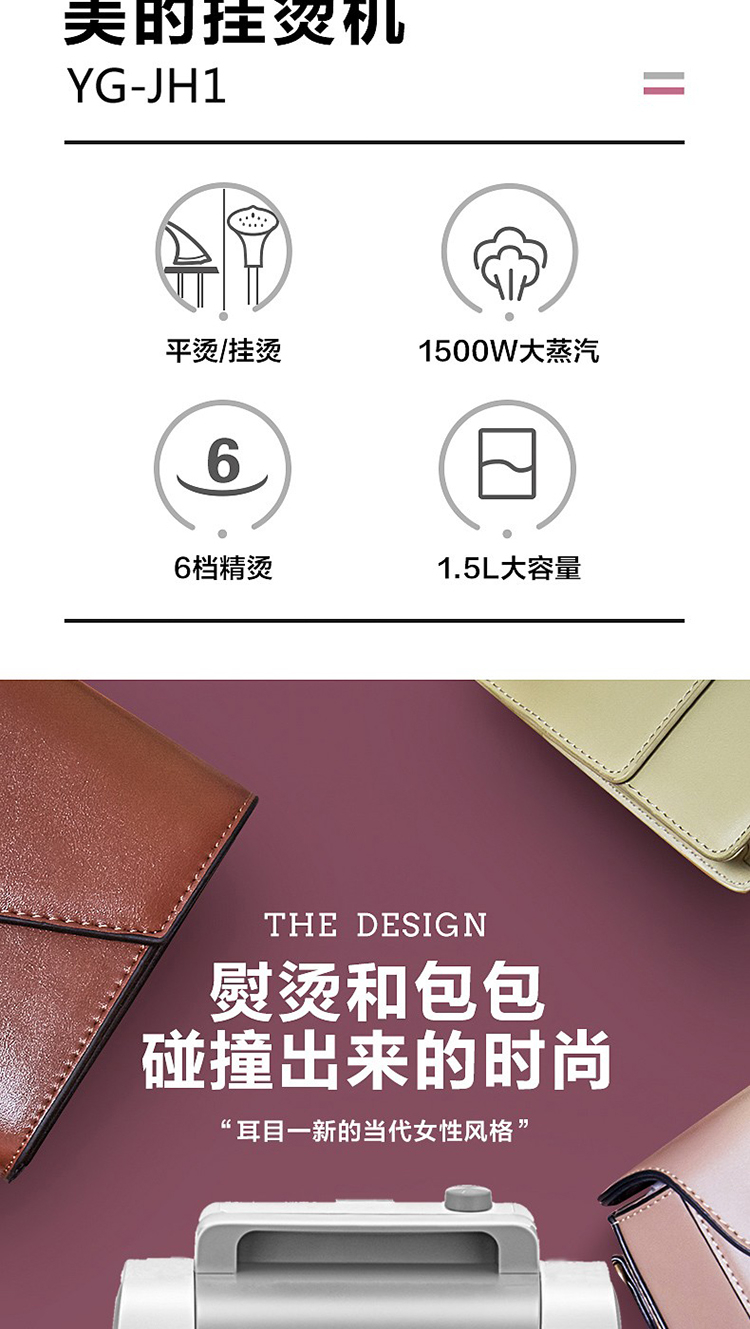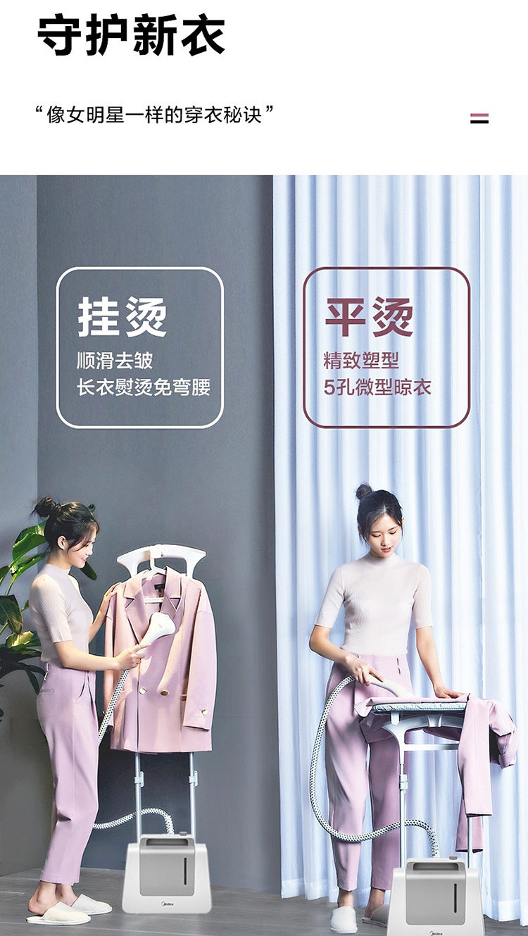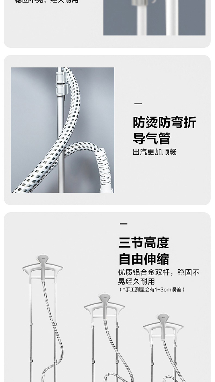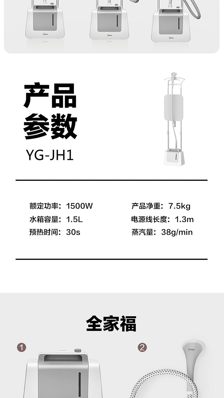 • 商品名称:美的 YG-JH1 1.5L 挂烫机双杆手持熨衣服挂烫机便携蒸汽熨斗 乳白色(单位:台)