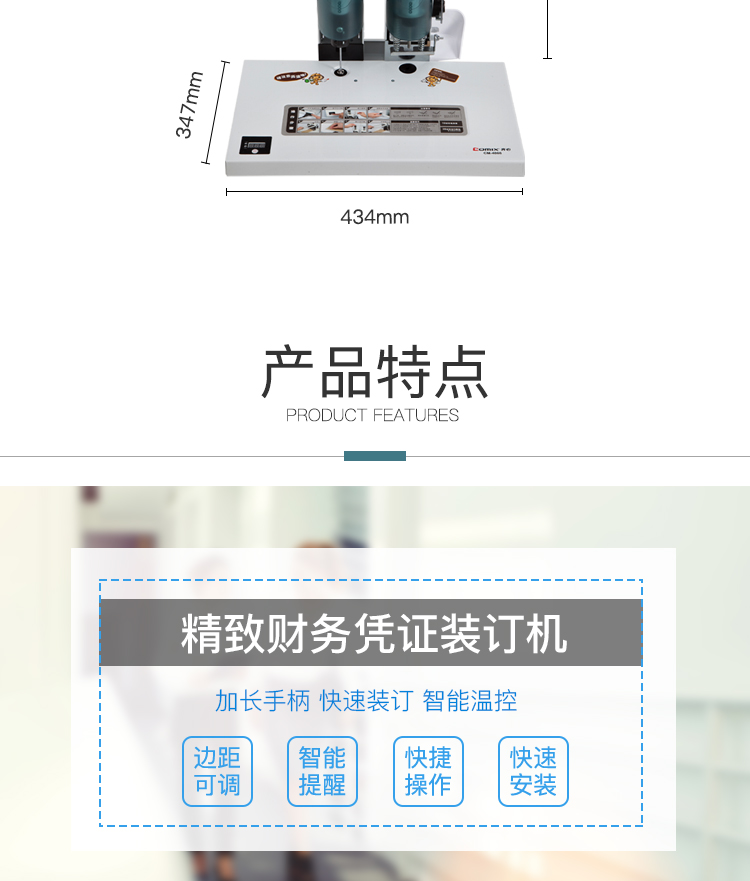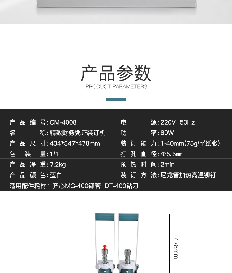 • 商品名称:齐心(COMIX) CM-4008 精致财务凭证装订机 打孔40mm 白(单位:台)