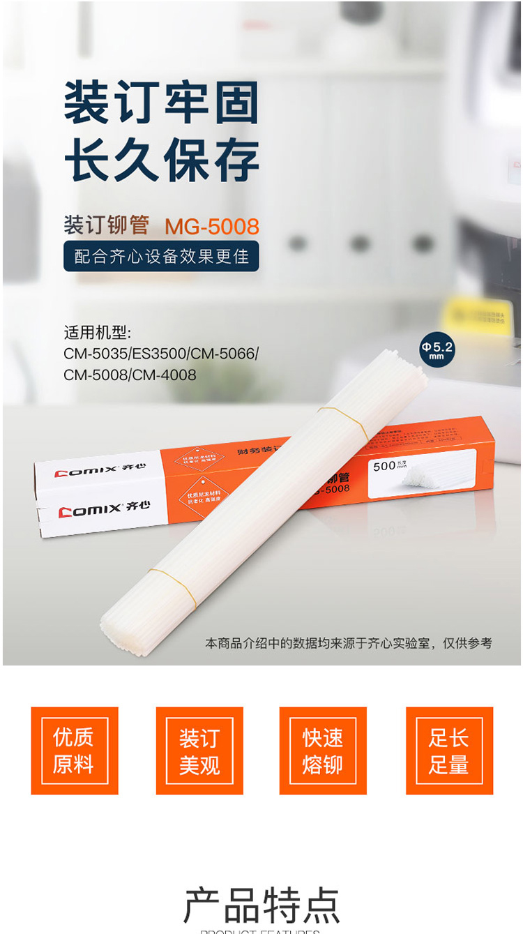 办公设备  > 财务/行政设备  > 装订/塑封设备及配件  >  齐心/COMIX  >  齐心 MG-5008 财务装订机耗材铆管 白 单位:盒
