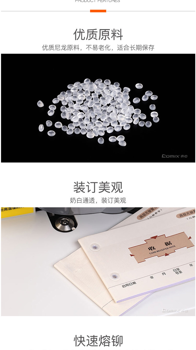 商品名称: 齐心 MG-5008 财务装订机耗材铆管 白 单位:盒