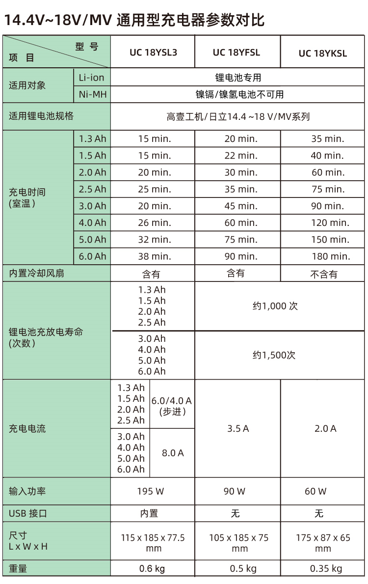商品名称: 高壹工机(HiKOKI) UC18YSL3 高壹工机(HiKOKI)UC18YSL3 14.4V/18V锂电池充电器 UC36YSL 配色(单位:个个)