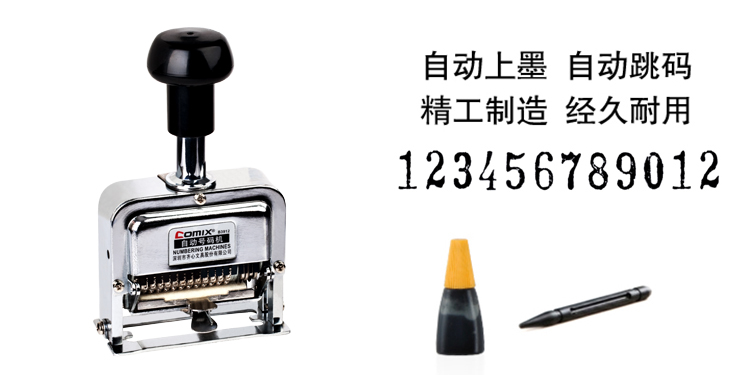 办公文具  > 常用文具  > 印章/号码机  >  齐心/COMIX  >  齐心 B3912 耐用金刚号码机 12位 配(单位:个)
