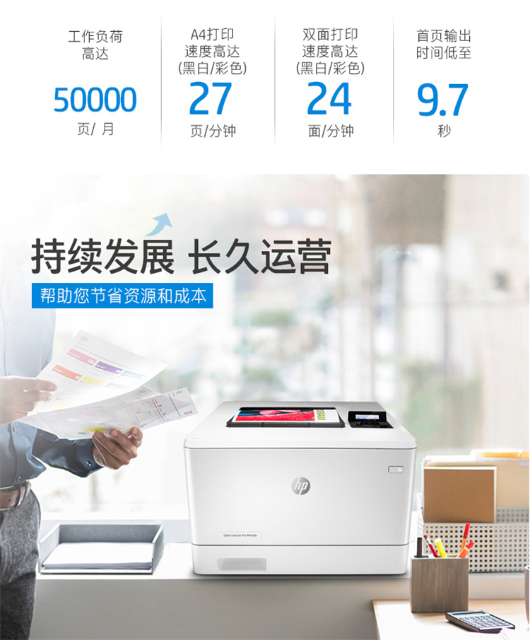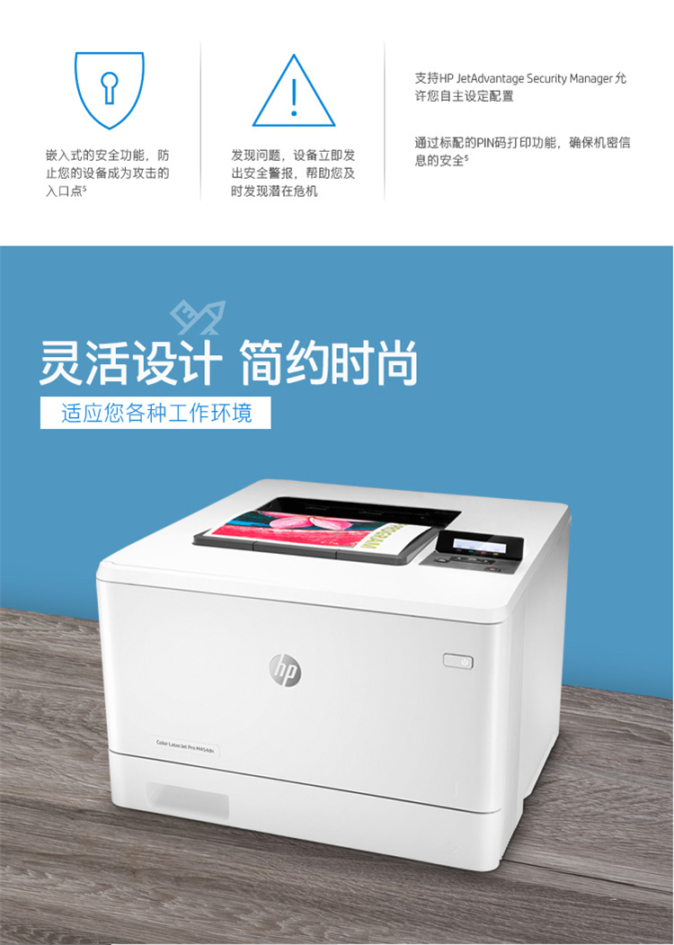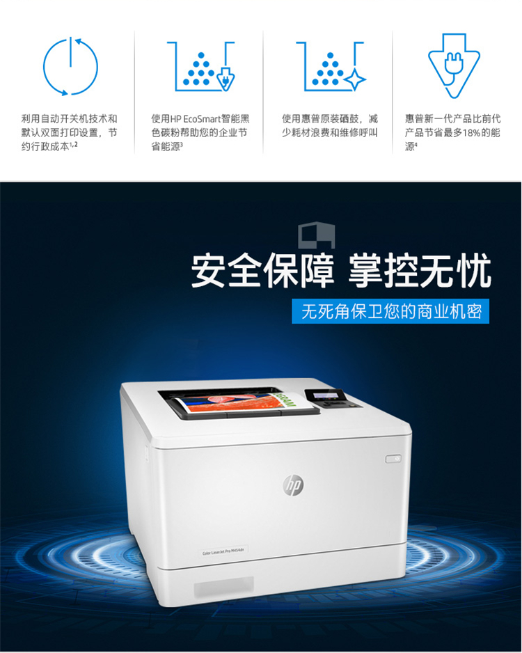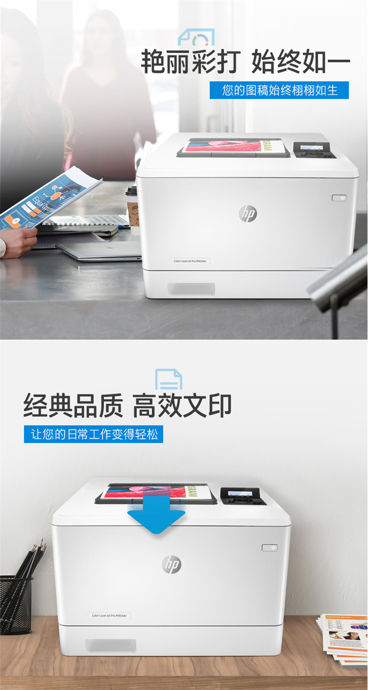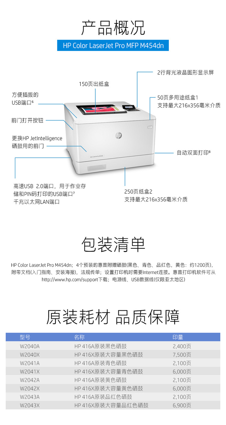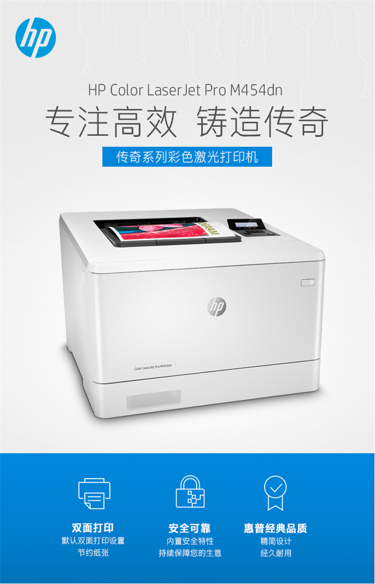 • 商品名称:HP惠普 M454fdn 激光打印机 彩色激光打印机 液晶显示屏 自动双面打印 有线网络连接 白色(单位:台)