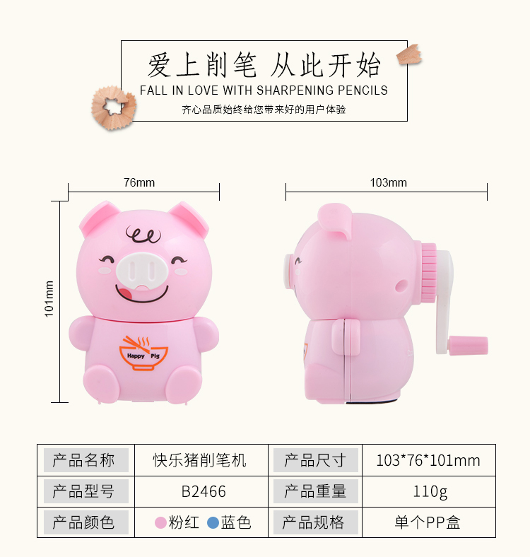 • 商品名称:齐心 B2466 可爱猪自动进笔削笔机 配色 单位:个
