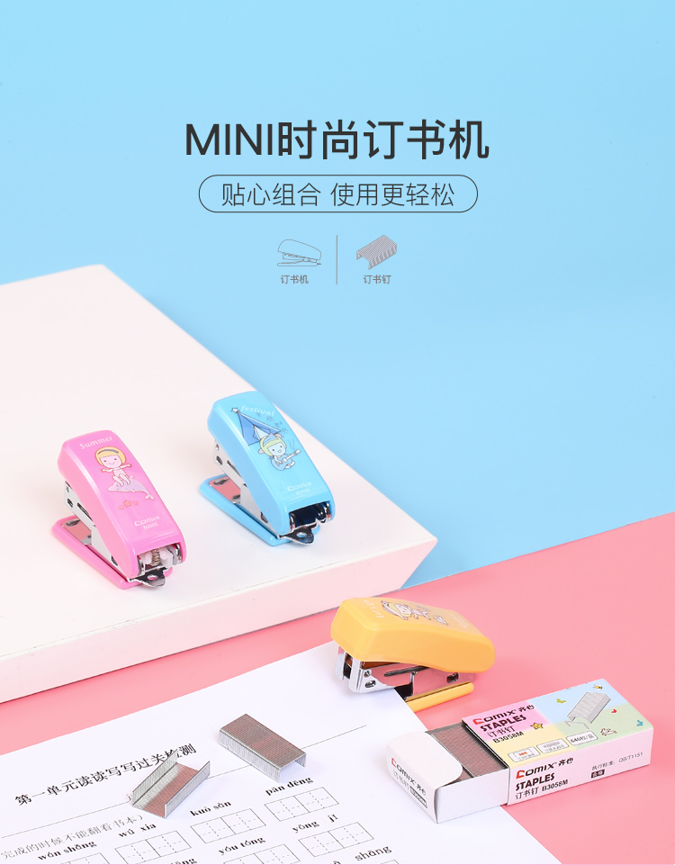 办公文具  > 常用文具  > 订书机  >  齐心/COMIX  >  齐心 B3004 学生订书机套装 12# 25页 配色 单位:套