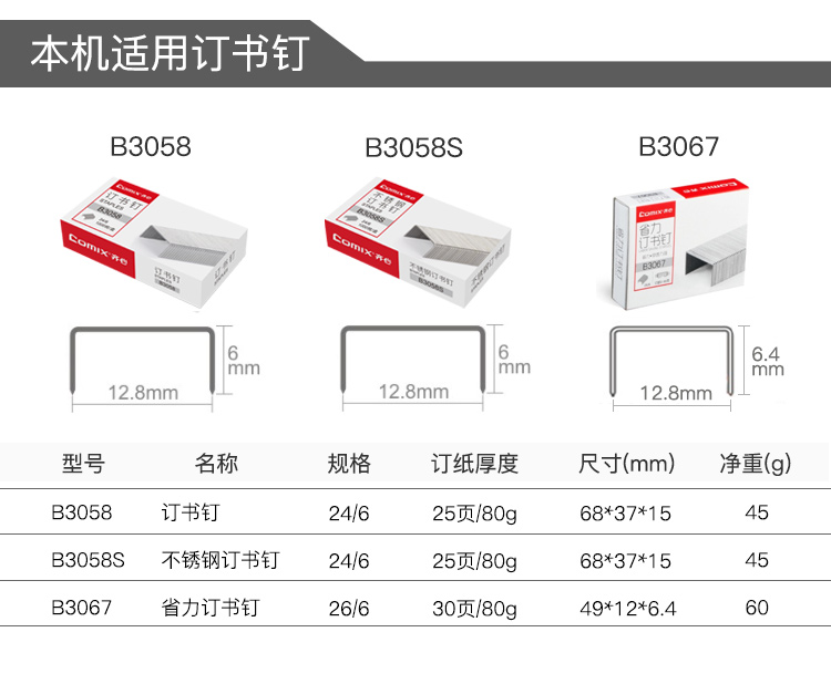 商品名称: 齐心 B3004 学生订书机套装 12# 25页 配色 单位:套