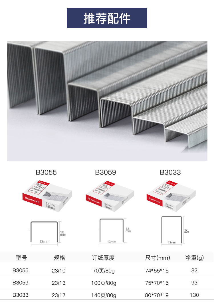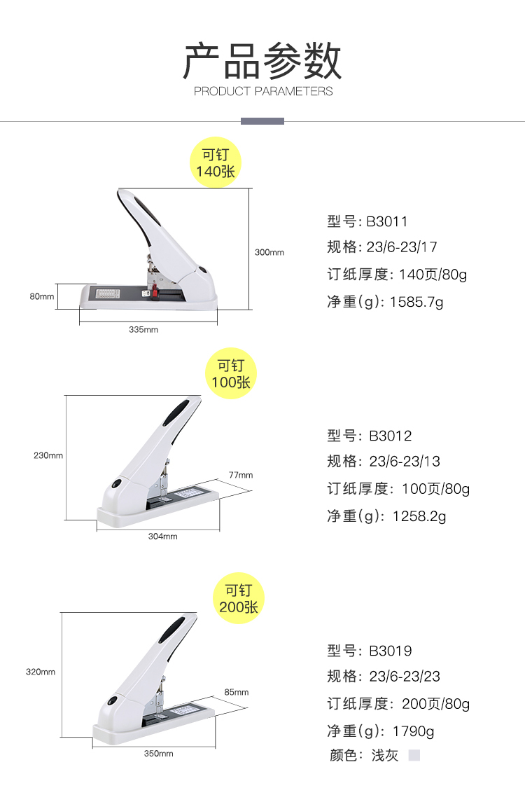 商品名称: 齐心 B3019 按键式 200页 重型省力订书机 灰(单位:台)