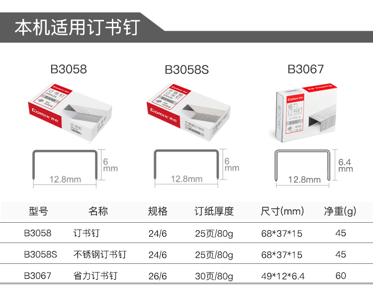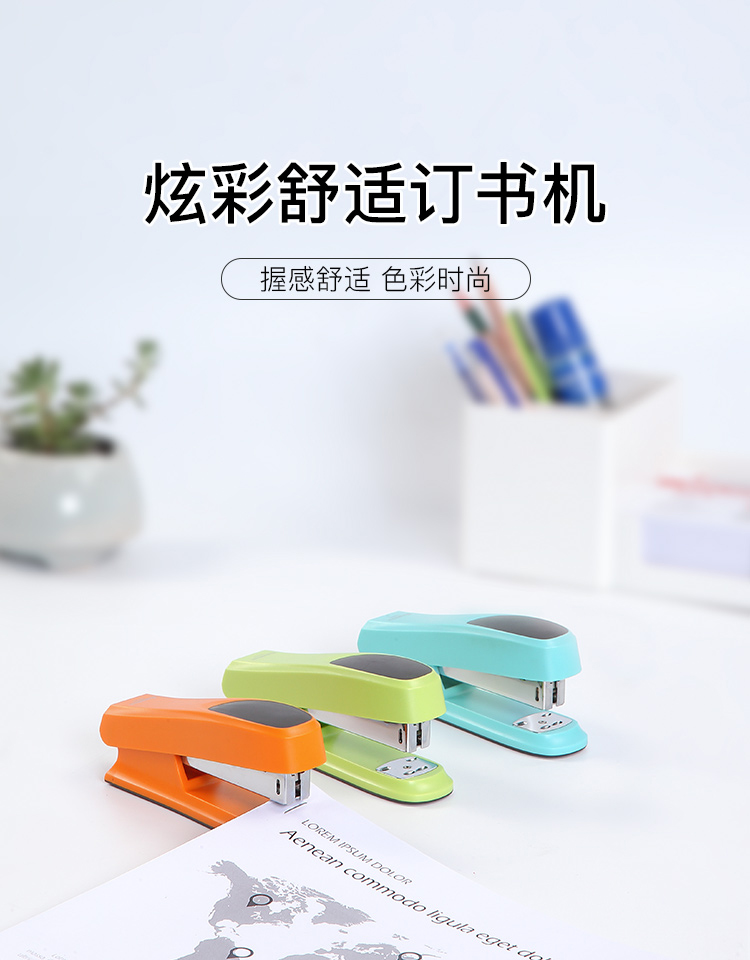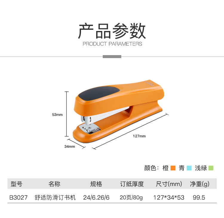 商品名称: 齐心 B3027 舒适防滑订书机 12# 20页 配色 单位:个