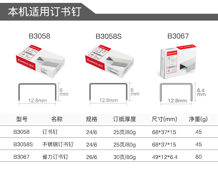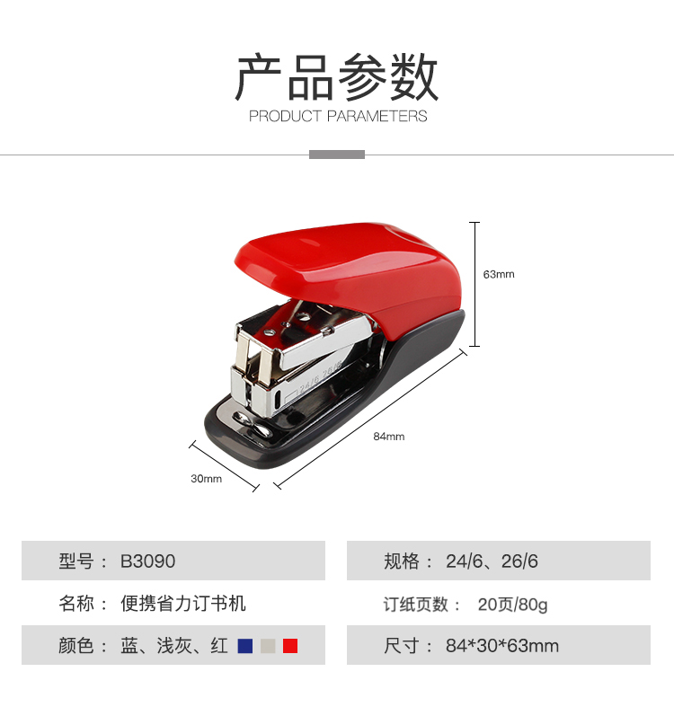商品名称: 齐心 B3090 12# 便携省力订书机 配 (单位:个)