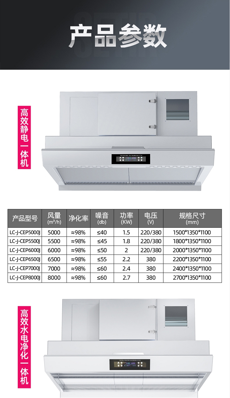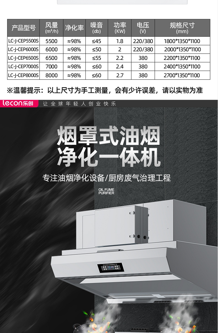 • 商品名称:乐创(lecon) LC-J-CEP8000S 8000风量/h 高效水电净化一体机 商用油烟机 (单位:台)