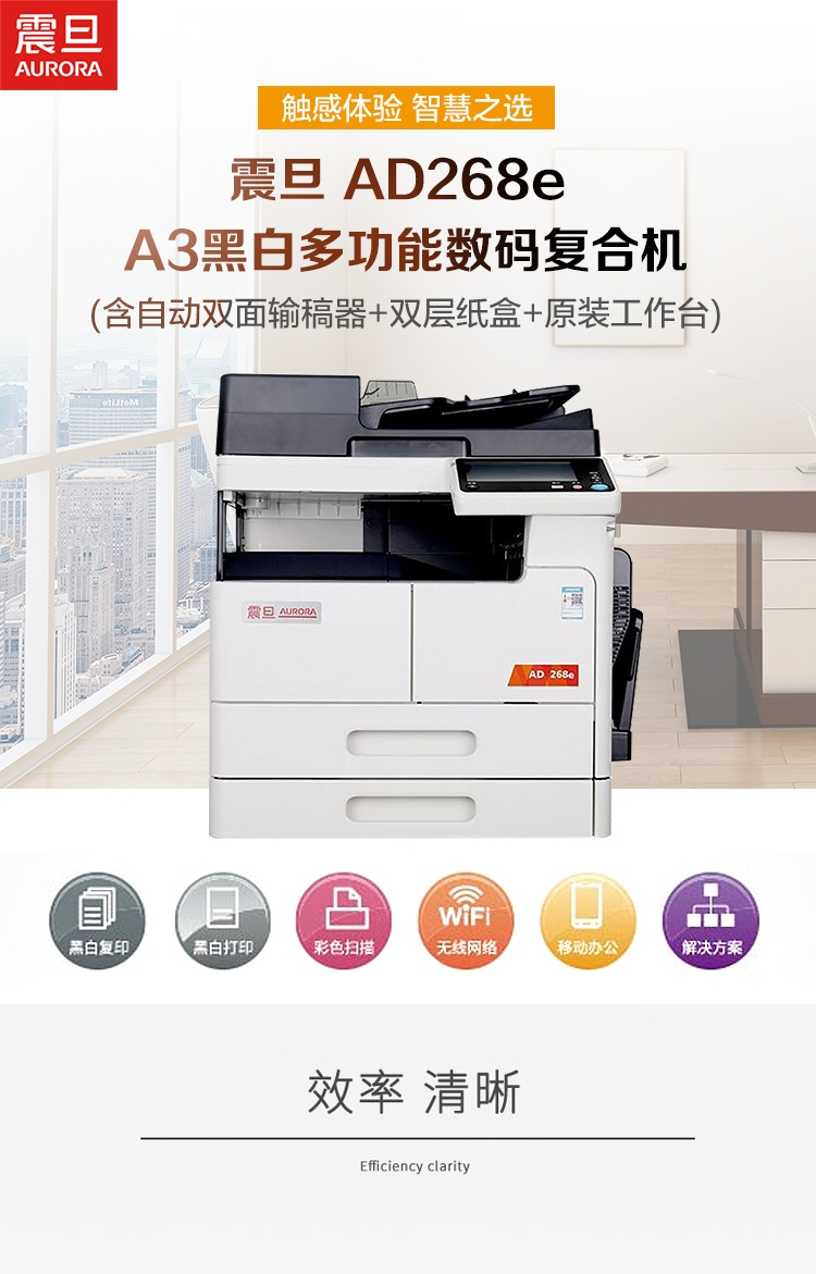 办公设备  > 打印/复印设备  > 复合机/一体机  >  震旦/AURORA  >  震旦 AD268e A3黑白多功能数码复合机(含自动双面输稿器+双层纸盒+原装工作台 白色(单位:台)