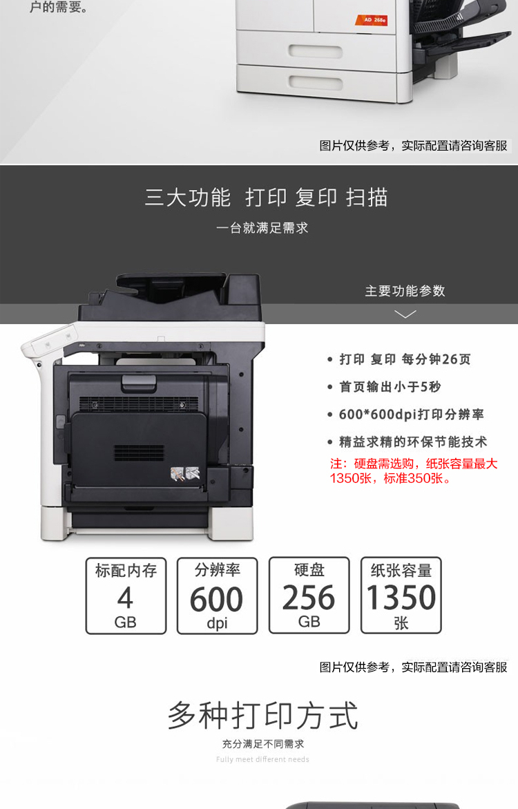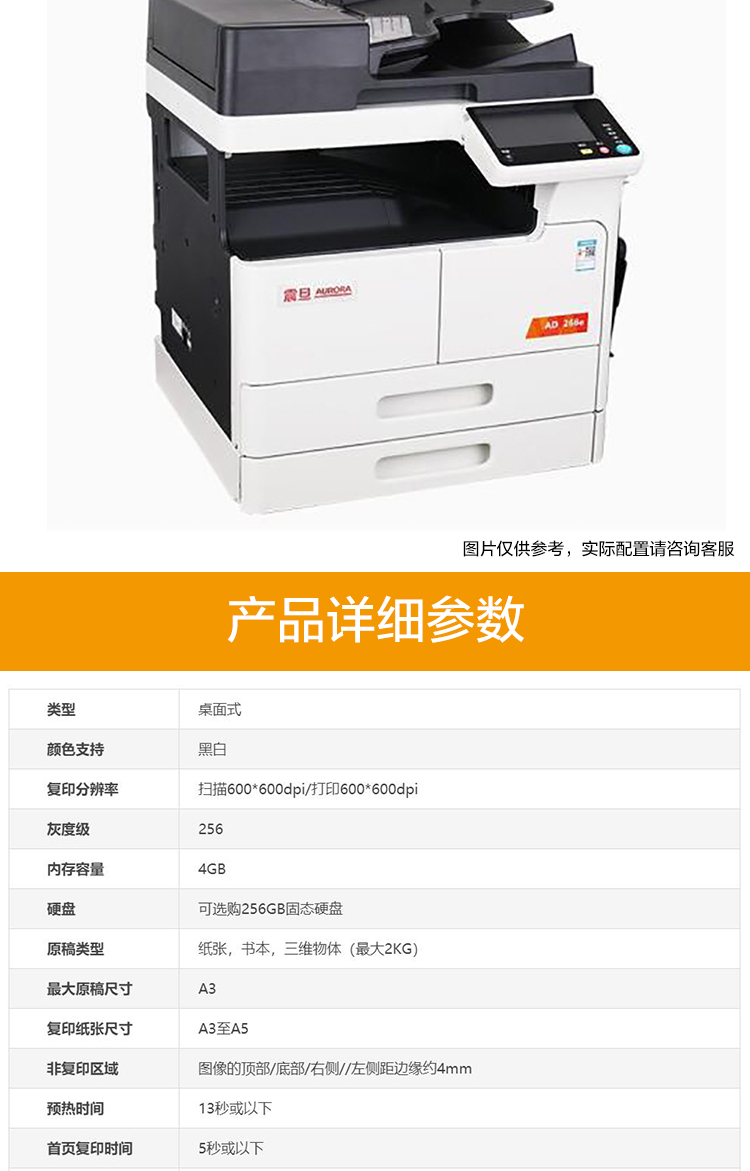 • 商品名称:震旦 AD268e A3黑白多功能数码复合机(含自动双面输稿器+双层纸盒+原装工作台 白色(单位:台)