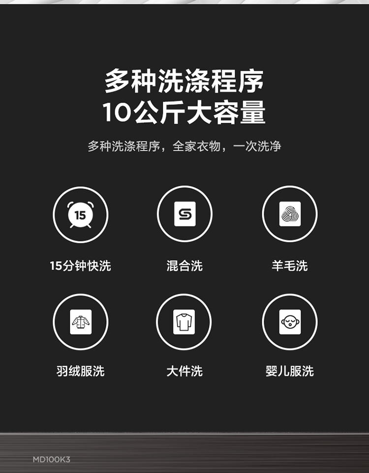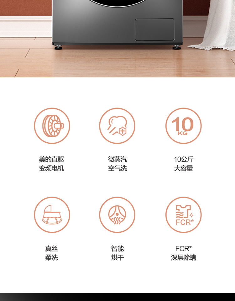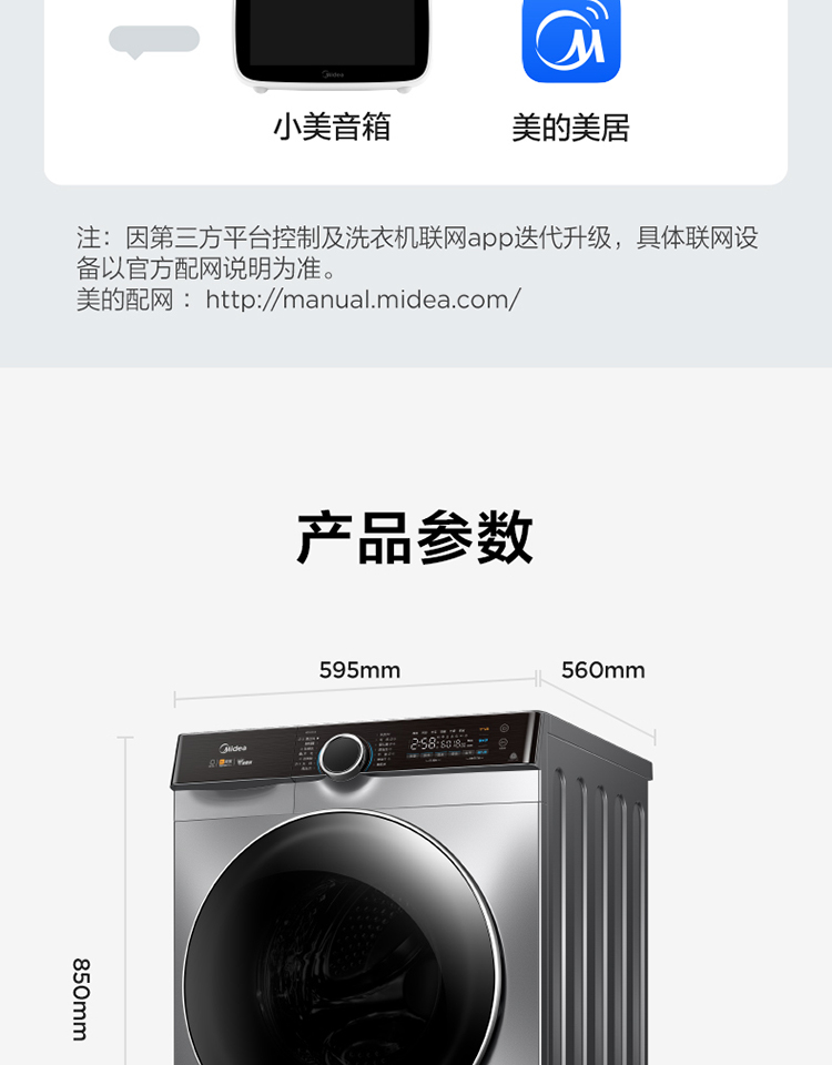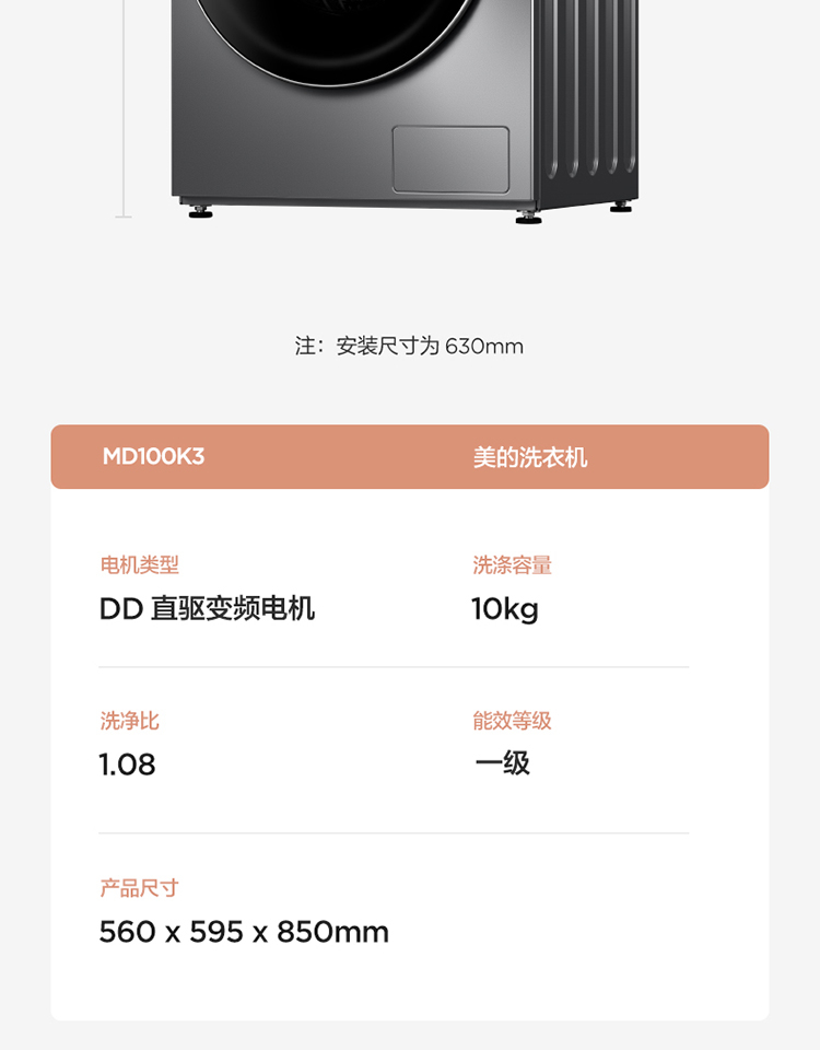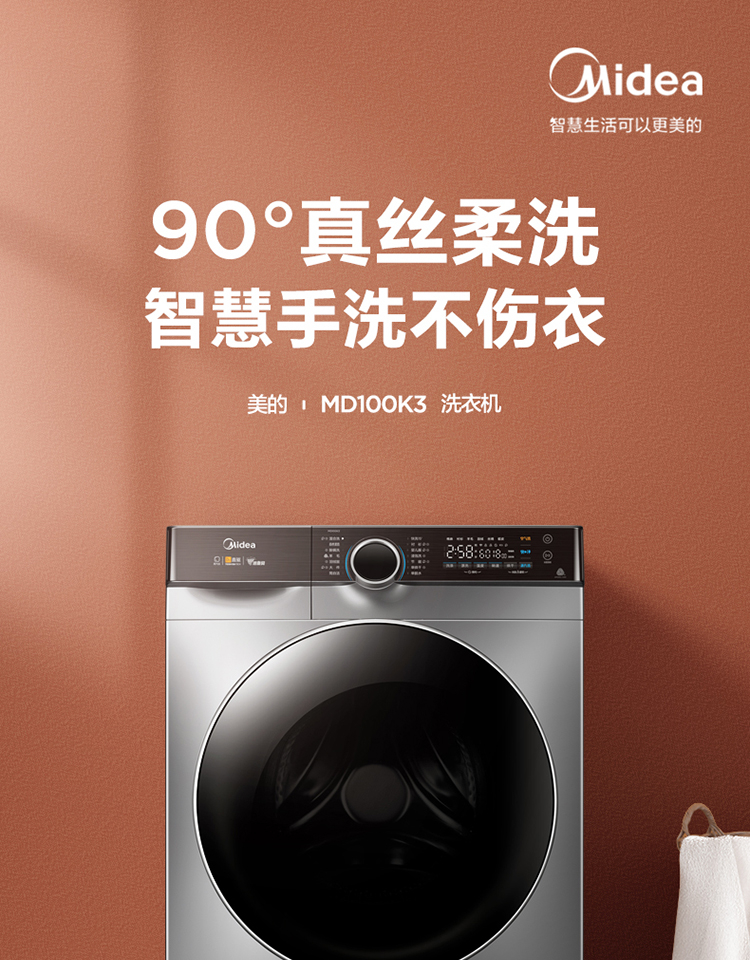 • 商品名称:美的(Midea) MD100K3 10公斤变频滚筒全自动洗烘一体机洗衣机 银色(单位:台)