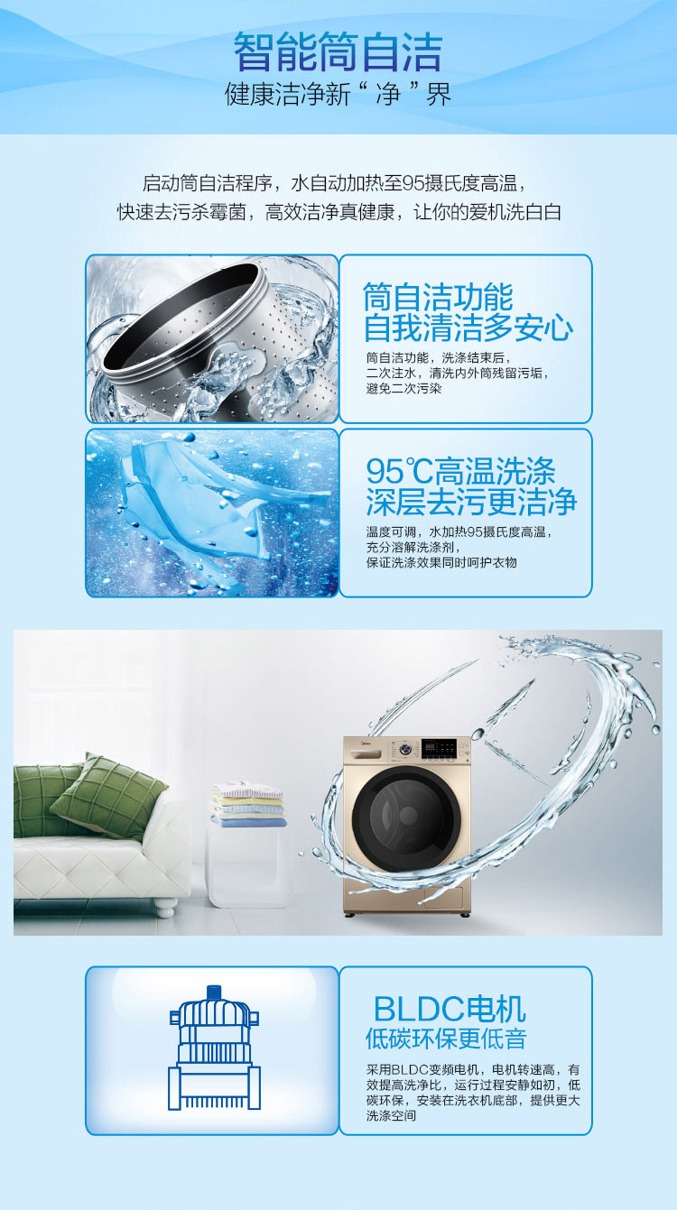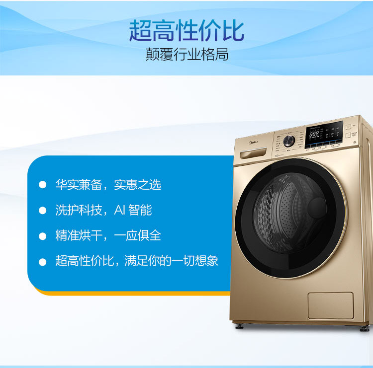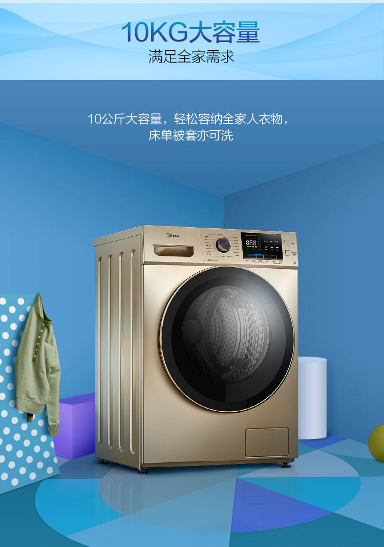 生活电器  > 洗衣机/烘干机  > 滚筒洗衣机  >  美的/Midea  >  美的(Midea) MD100-1451WDY-G21G 10公斤变频滚筒全自动洗烘一体机洗衣机 金色(单位:台)