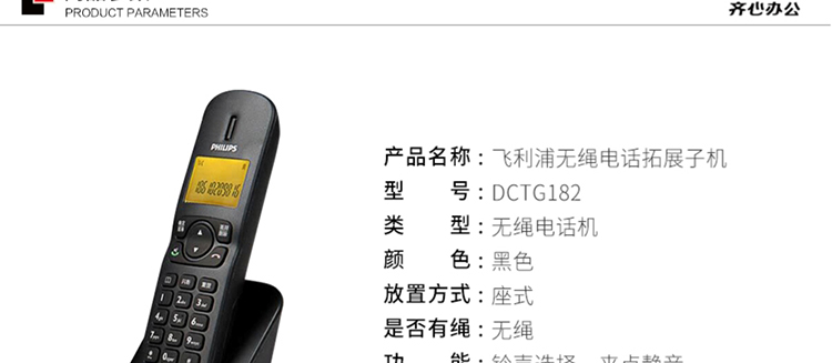 商品名称: 飞利浦 DCTG-182 无绳电话扩展子机 单位:台