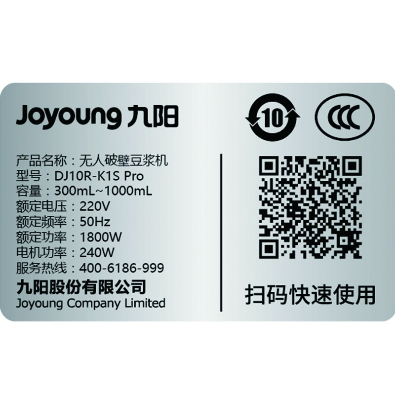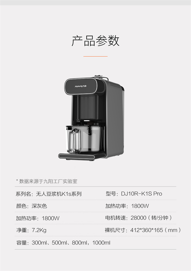 • 商品名称:九阳(Joyoung) K1sPro 家用咖啡米糊机不用手洗 破壁豆浆机 尊享版Pro(单位:台)