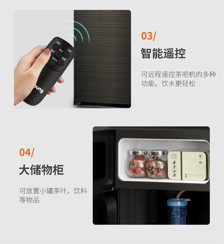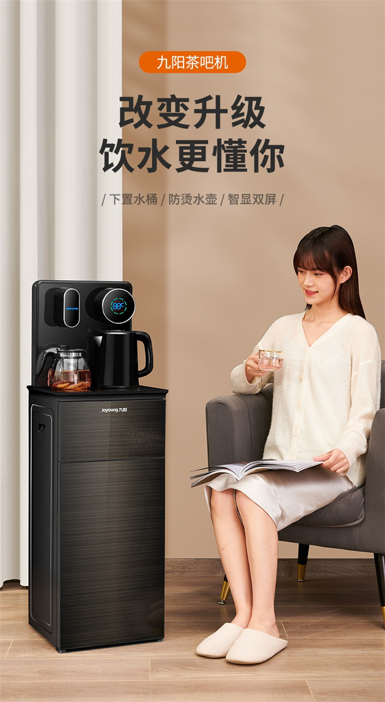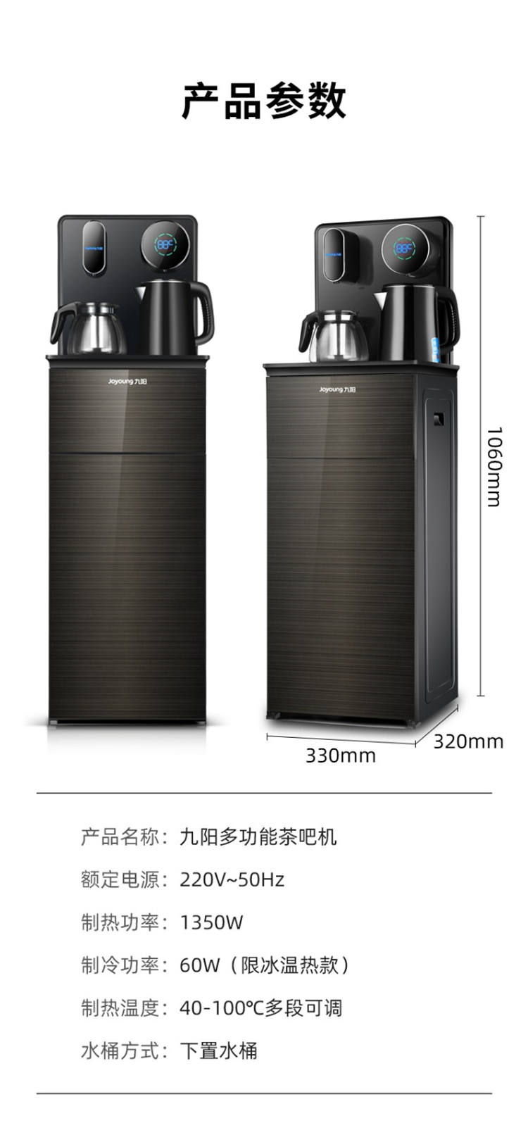 • 商品名称:九阳 JYW-JCM63 智能触控茶吧机 饮水机家用立式下置水桶全自动上水遥控双出水 黑色(单位:台)