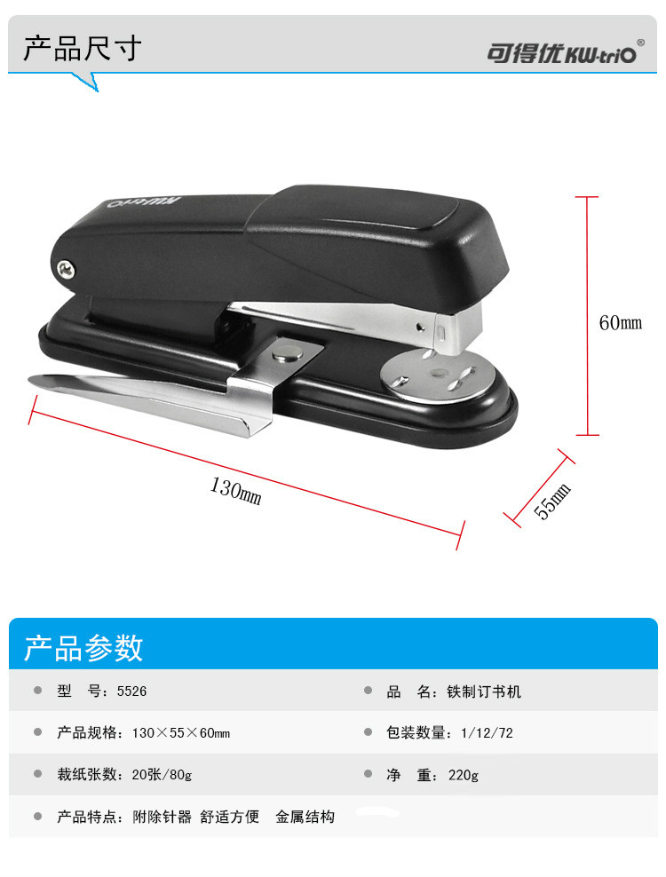 • 商品名称:可得优 5526 3号金属类订书机 配色( 单位:个)