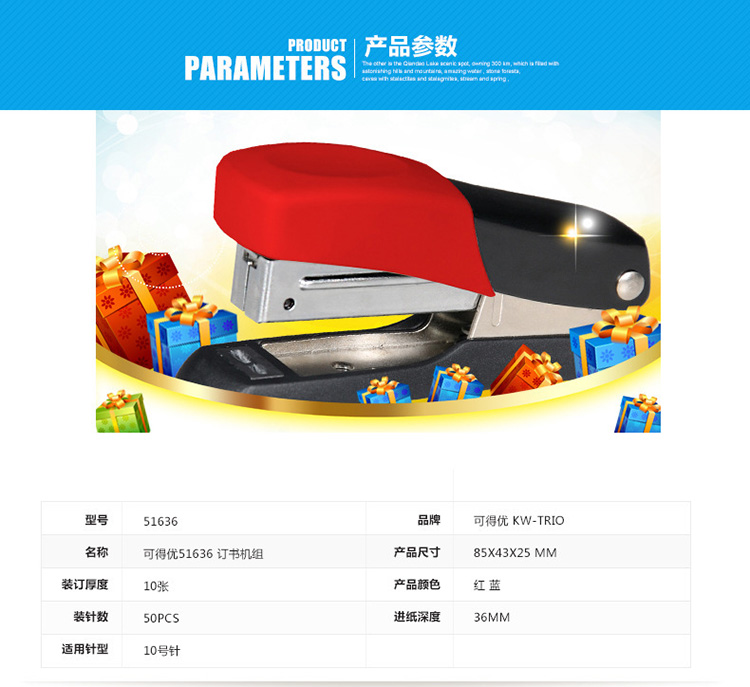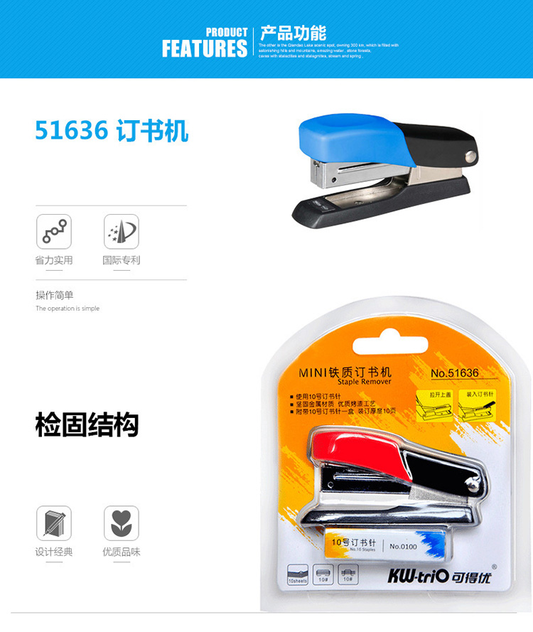 • 商品名称:可得优 51636 订书机 泡壳套装 配 单位:个