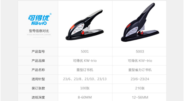 • 商品名称:可得优 5003 重型订书机(210页) 黑 单位:个