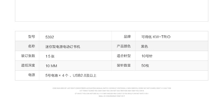 商品名称: 可得优 5392 10号电动订书机 配 单位:个