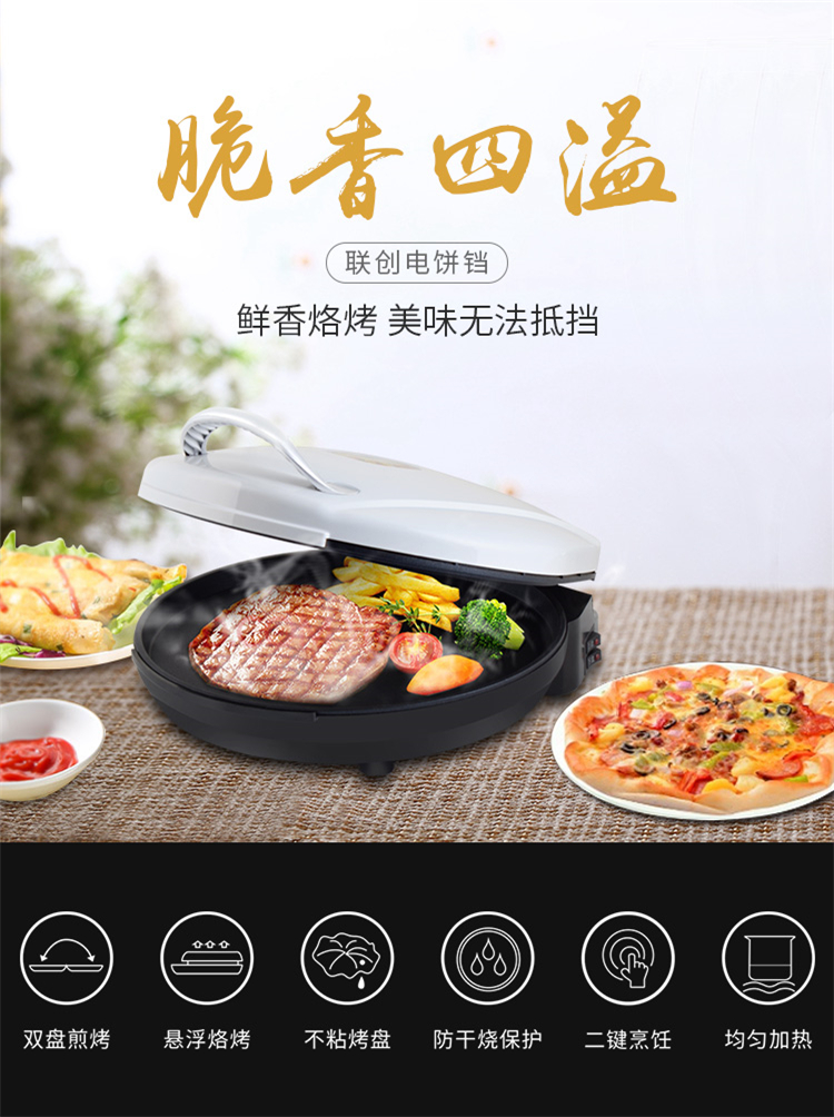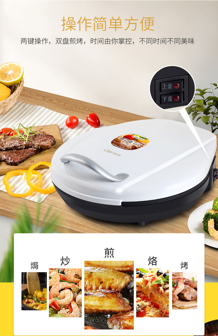 生活电器  > 厨房小家电  > 煎烤机/电饼档  >  联创  >  联创 DF-BL006MB 电饼铛 双面加热煎烤机烙饼机 白色(单位:台)