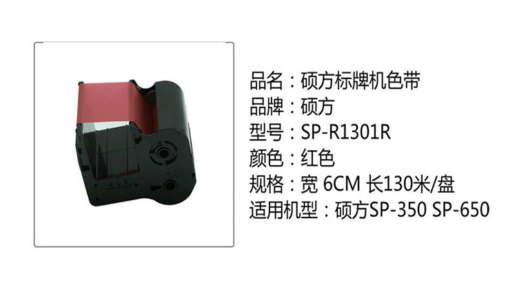 办公耗材  > 打印耗材  > 色带  >  硕方  >  硕方 SP-R1301R 130m*6cm/盘标牌机色带 红色 适用SP-350、SP-650