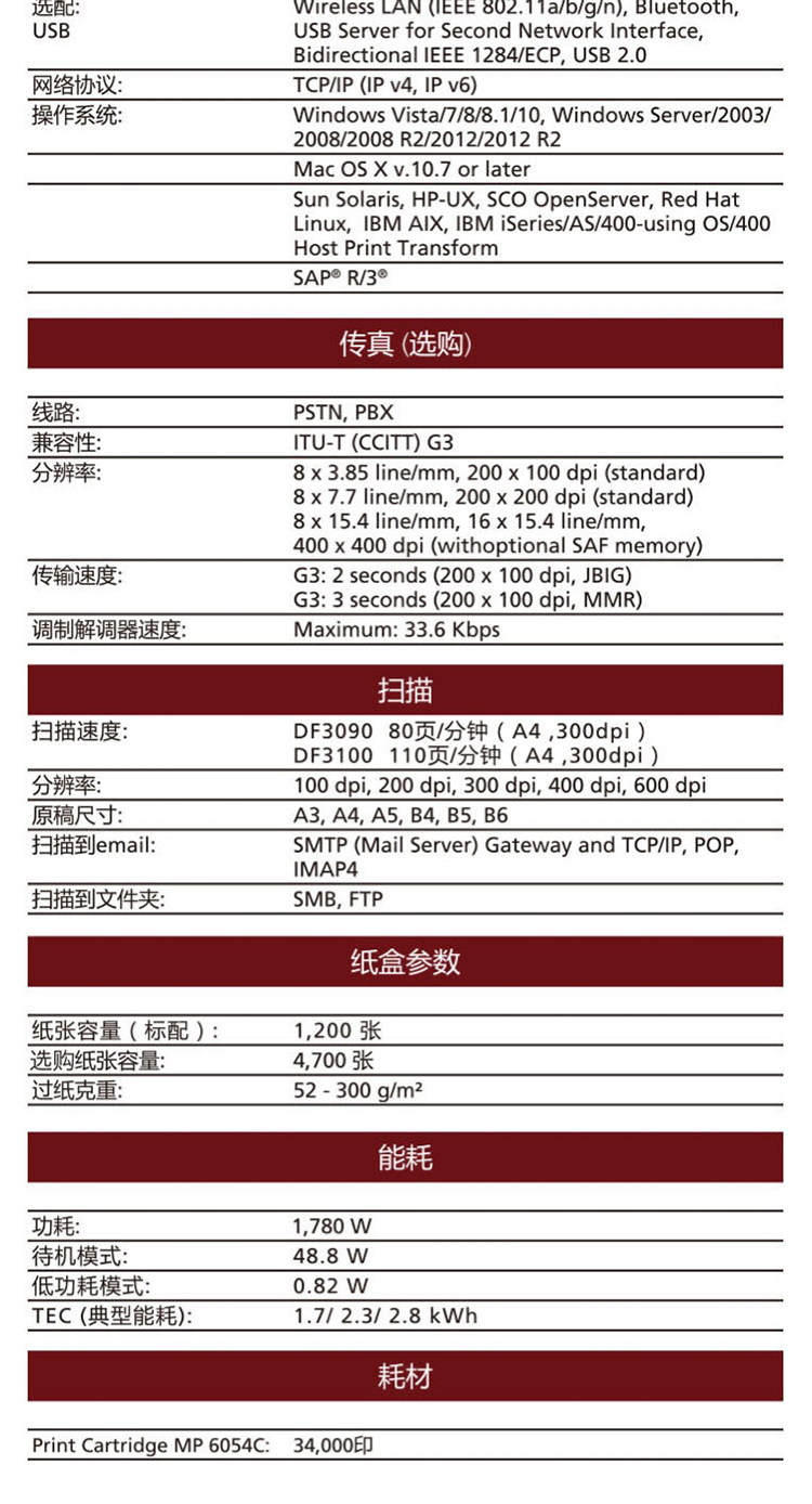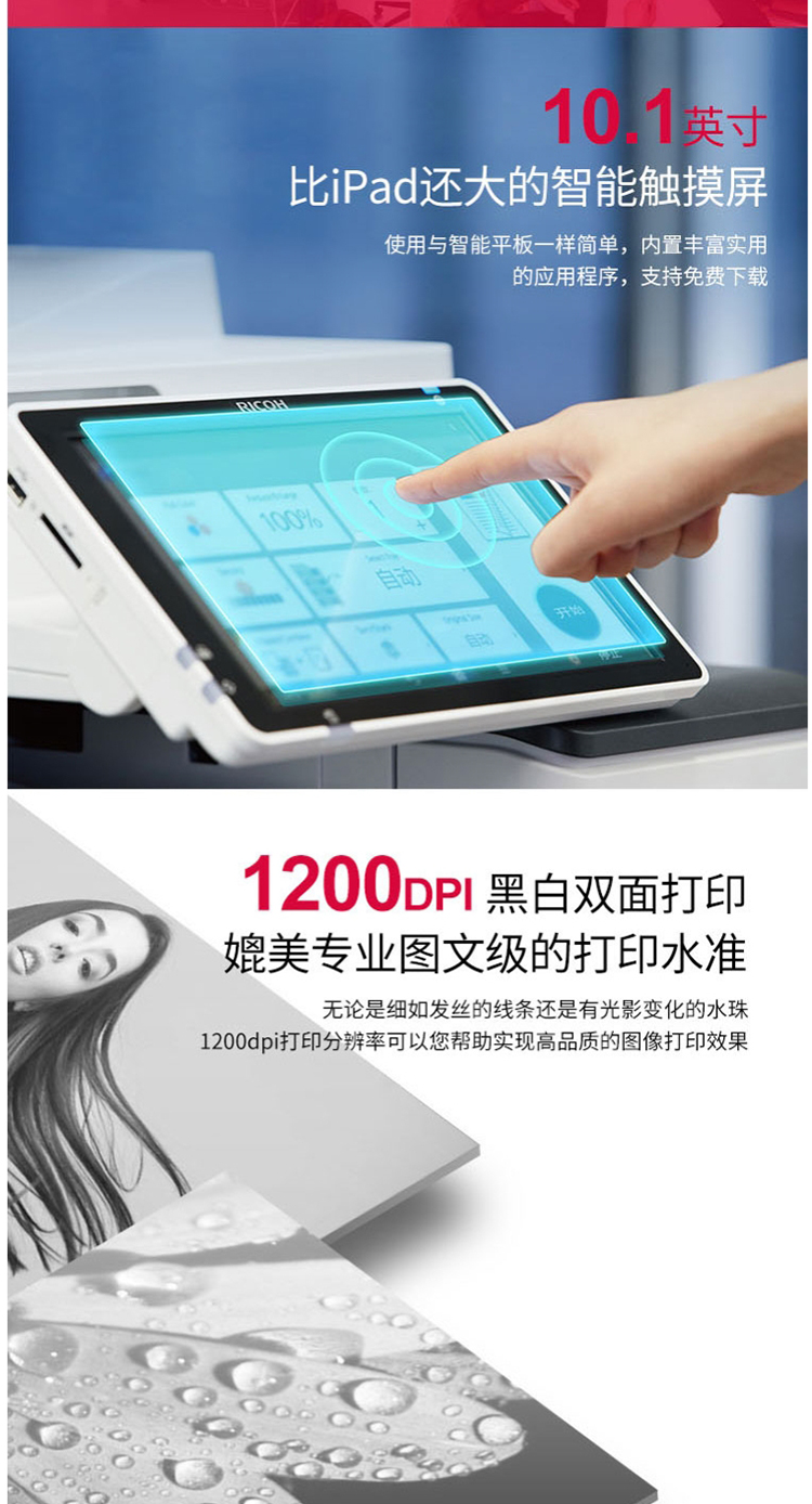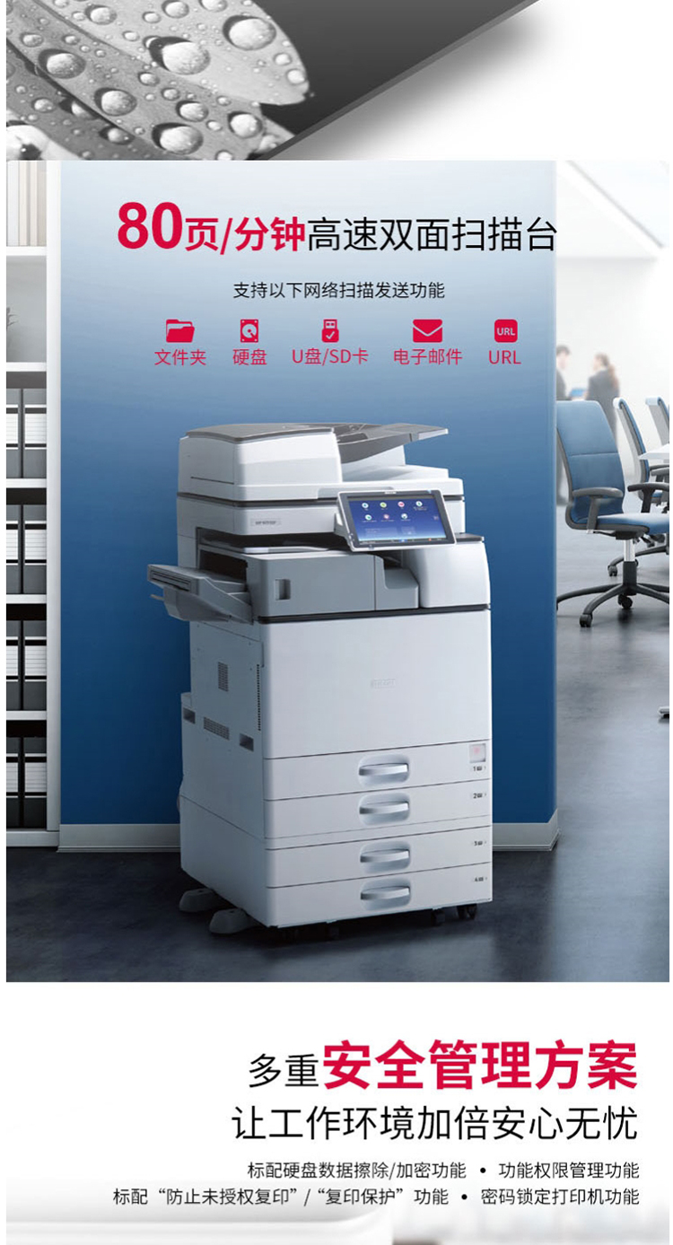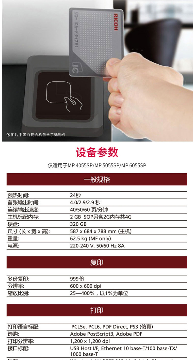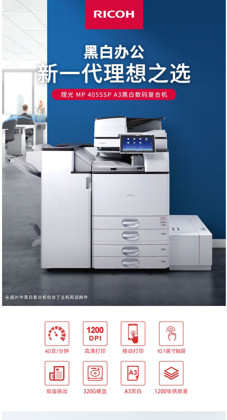 • 商品名称:理光 MP4055SP 黑白中速数码复合机(输稿器+双面+双纸盒+底柜)