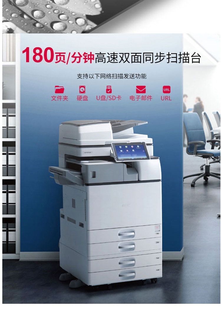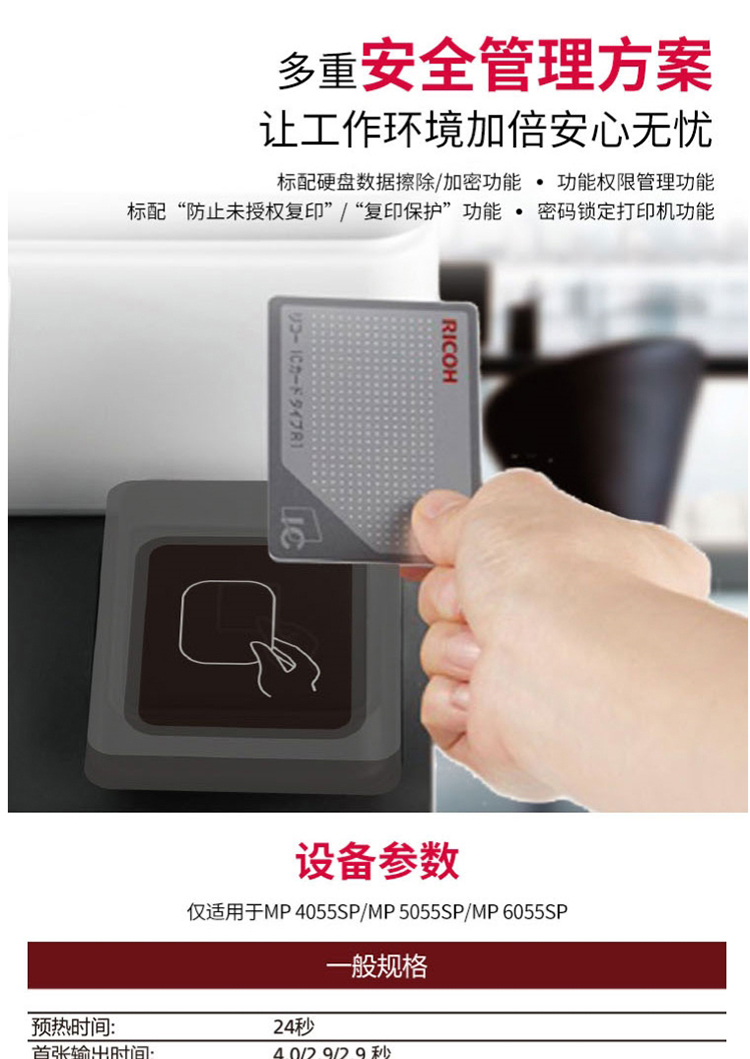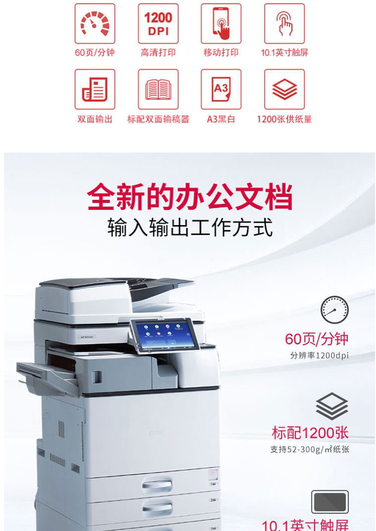 • 商品名称:理光 MP6055SP 黑白中速数码复合机(输稿器+双面+双纸盒+底柜)