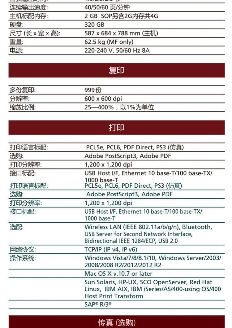 商品名称: 理光 MP6055SP 黑白中速数码复合机(输稿器+双面+双纸盒+底柜)