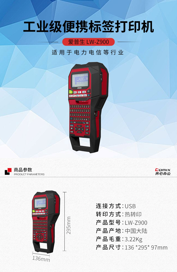 • 商品名称:爱普生(EPSON)LW-Z900 工业级 便携标签打印机(单位:台)