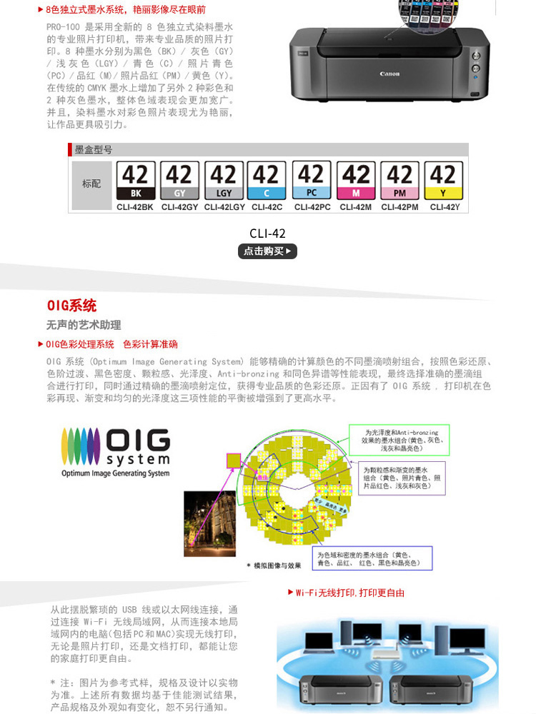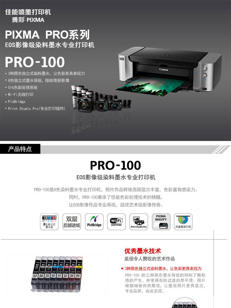 • 商品名称:佳能 pro-100 A3幅面EOS影像级染料墨水专业网络打印机