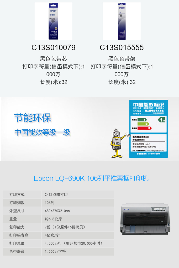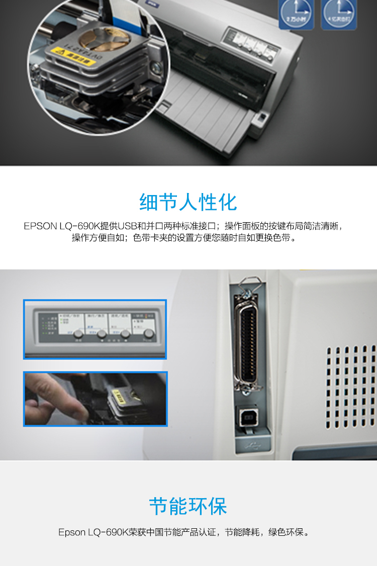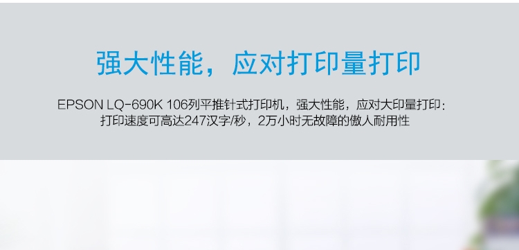 • 商品名称:爱普生 LQ-690K 平推式针式打印机 快递单 灰色