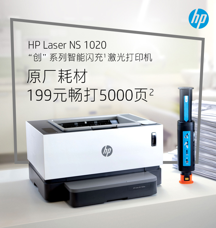 • 商品名称:惠普/HP Laser NS1020 智能闪充 1020plus升级款 黑白激光打印机 白色