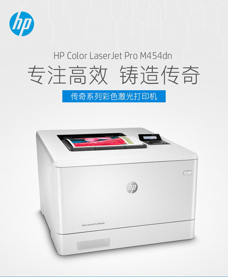 办公设备  > 打印/复印设备  > 激光打印机  >  惠普/HP  >  惠普/HP M454dn A4单功能 彩色激光打印机 自动双面打印 有线连接 白色