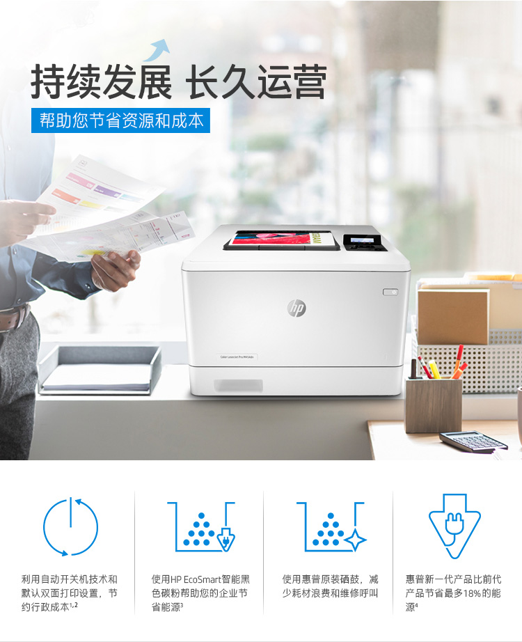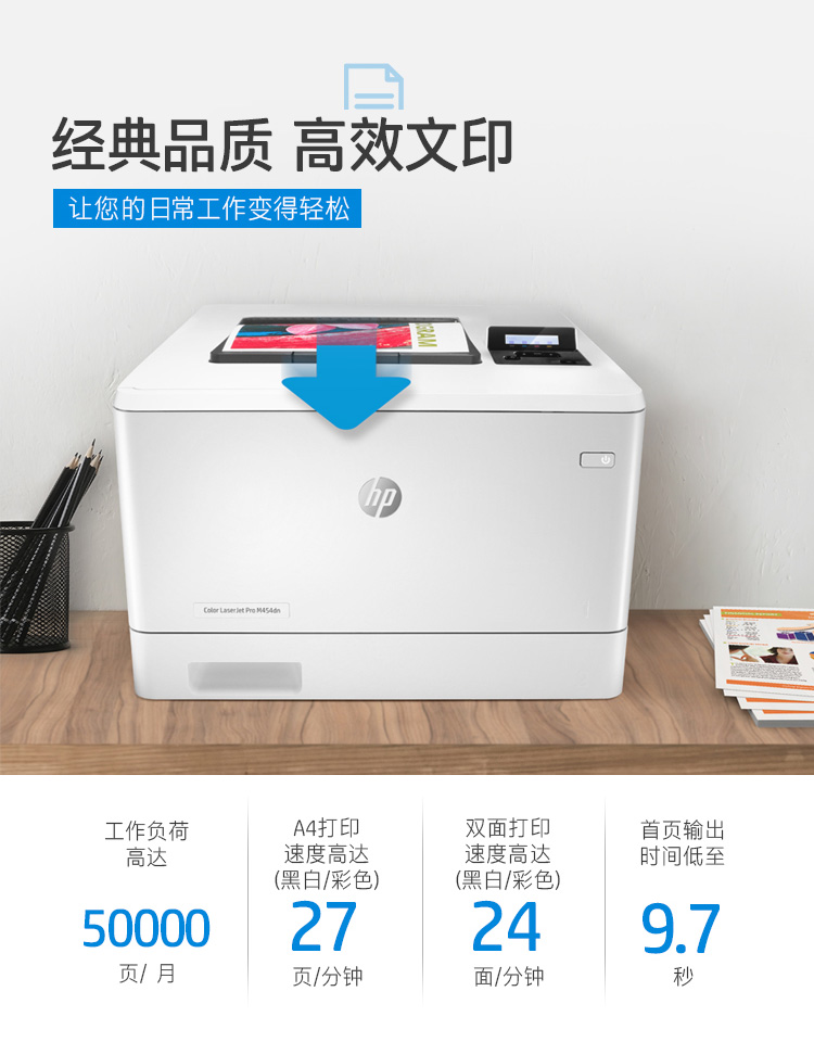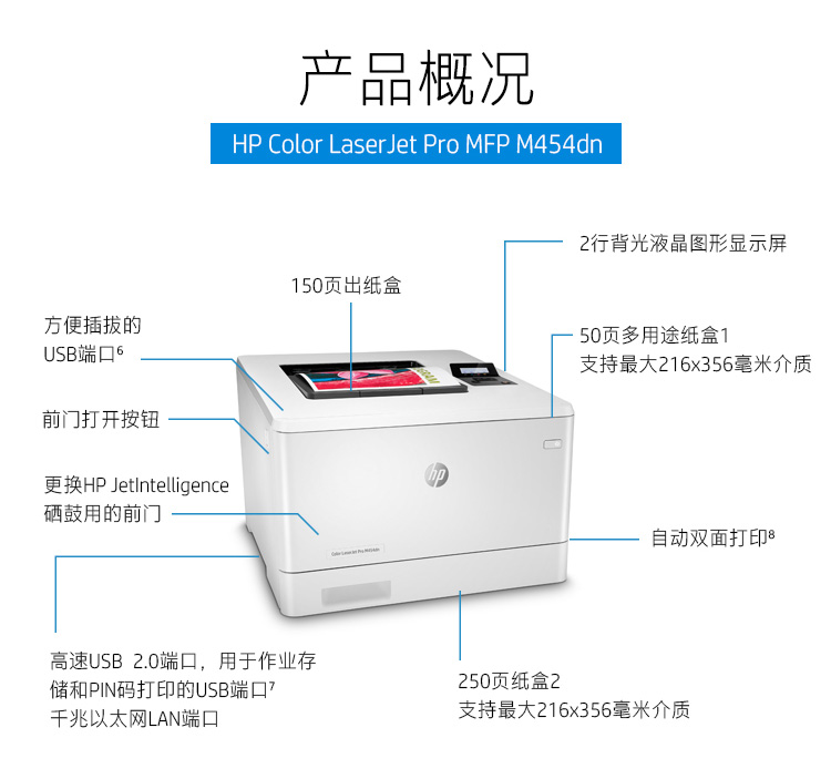 • 商品名称:惠普/HP M454dn A4单功能 彩色激光打印机 自动双面打印 有线连接 白色